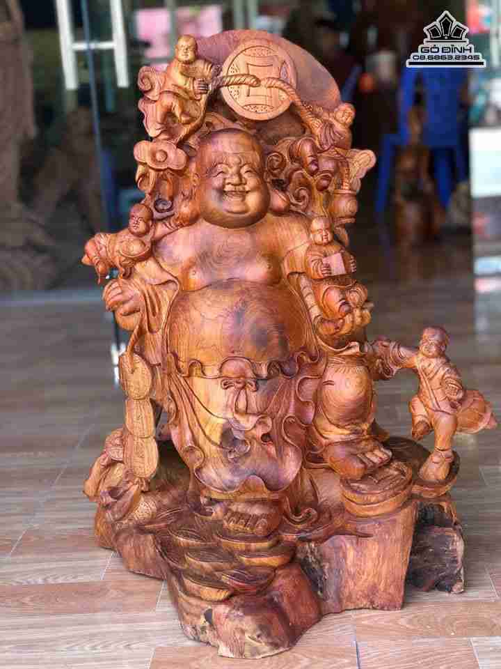 Phật di lặc ngũ phúc gỗ hương cao 75 rộng 60 dày 50 (cm)