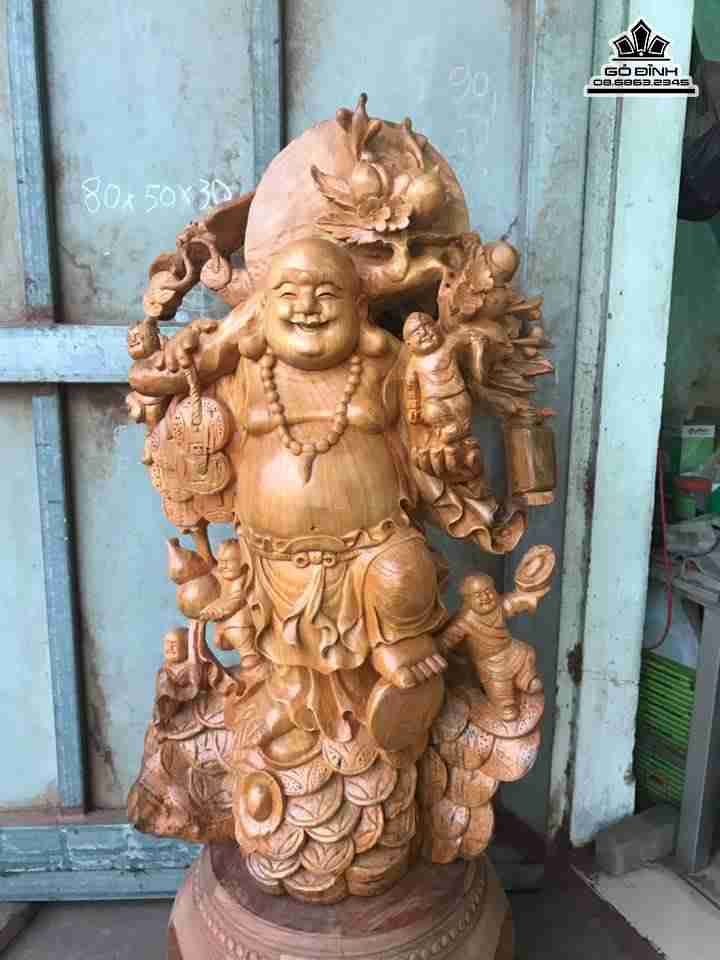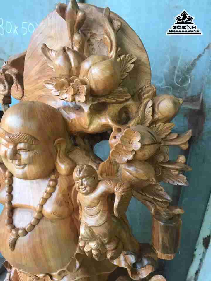 Phật di lặc ngũ phúc gỗ pơ mu cao 80 rộng 50 dày 30 (cm)