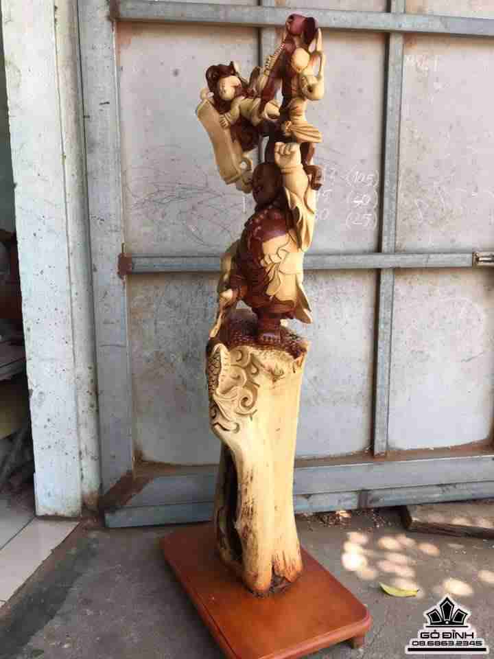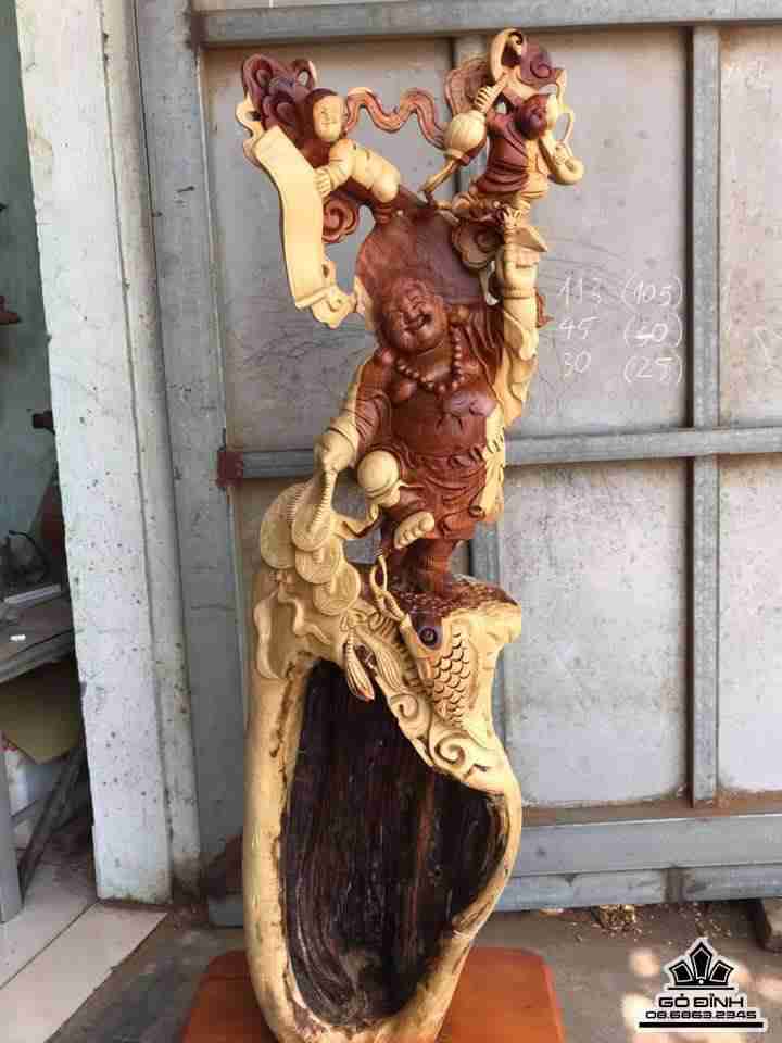 Phật di lặc nhị phúc lũa gỗ hương 105x45x30