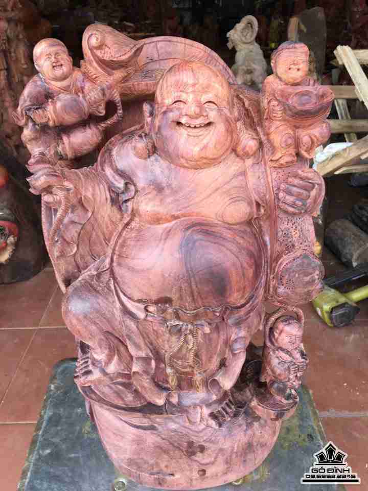 Phật di lặc tam phúc gỗ cẩm cao 55 rộng 32 sâu 26 (cm)