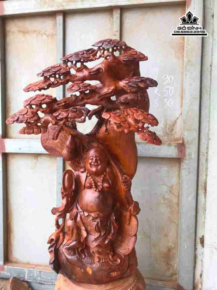 Phật di lặc đứng gốc tùng gỗ hương cao 90 rộng 50 dày 30 (cm)