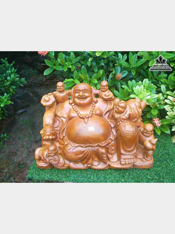 Phật di lặc và ngũ phúc gỗ xá xị cao 36 rộng 50 dày 27 (cm)