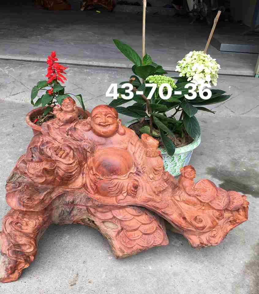 Phật di lặc và nhị phúc gỗ hương 43x70x36