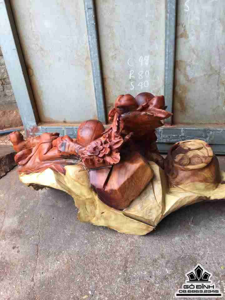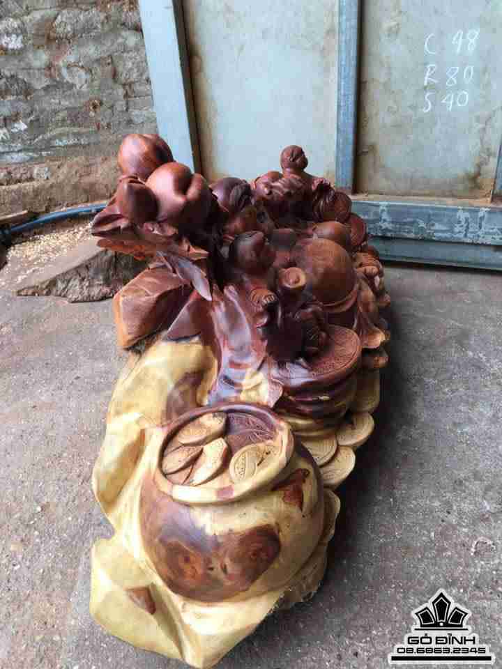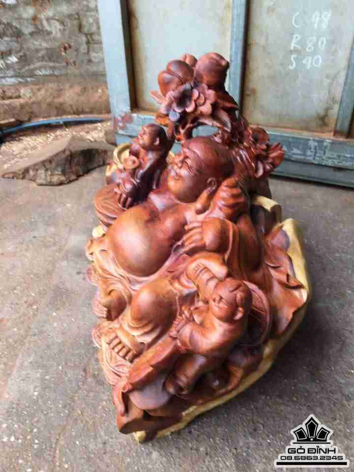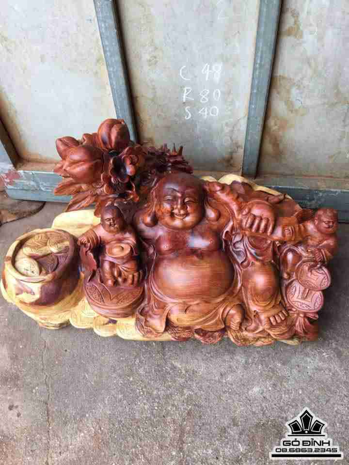 Phật di lặc và nhị phúc gỗ hương 48x80x40