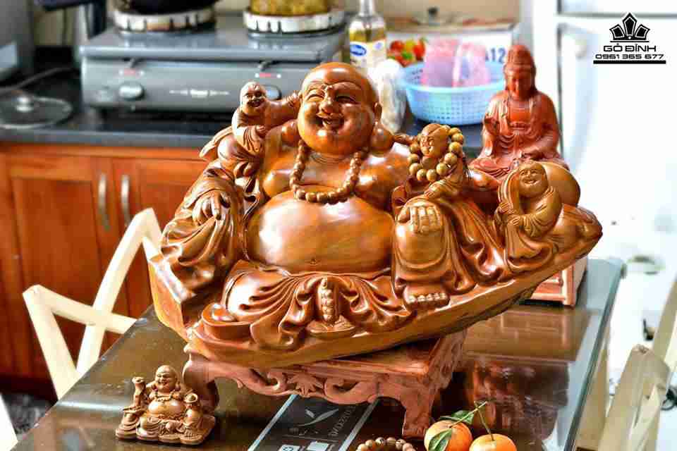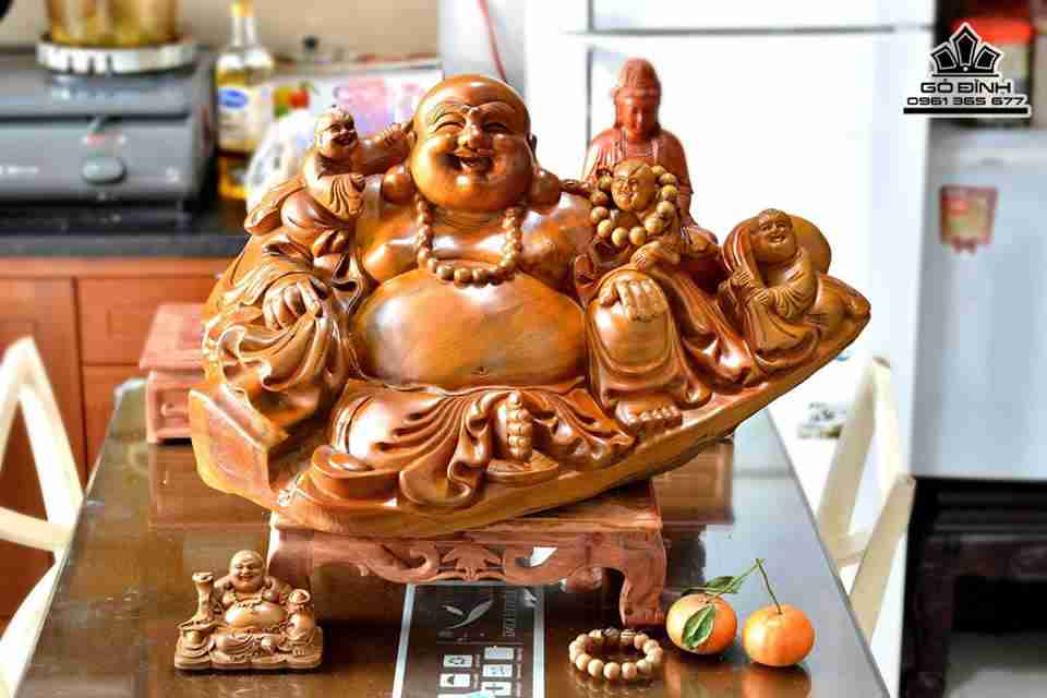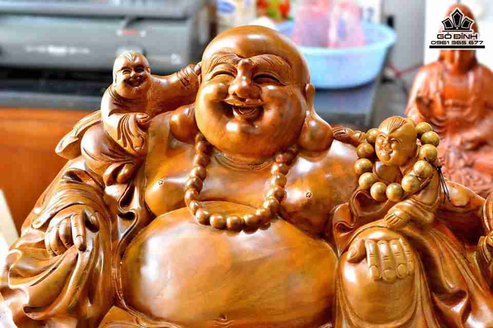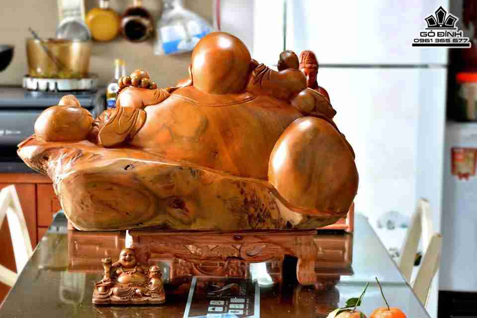 Phật di lặc và tam tặc gỗ bách xanh thơm 66x36x36