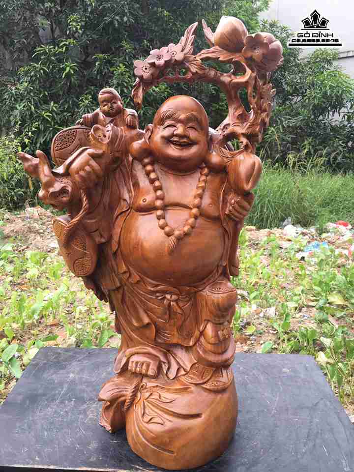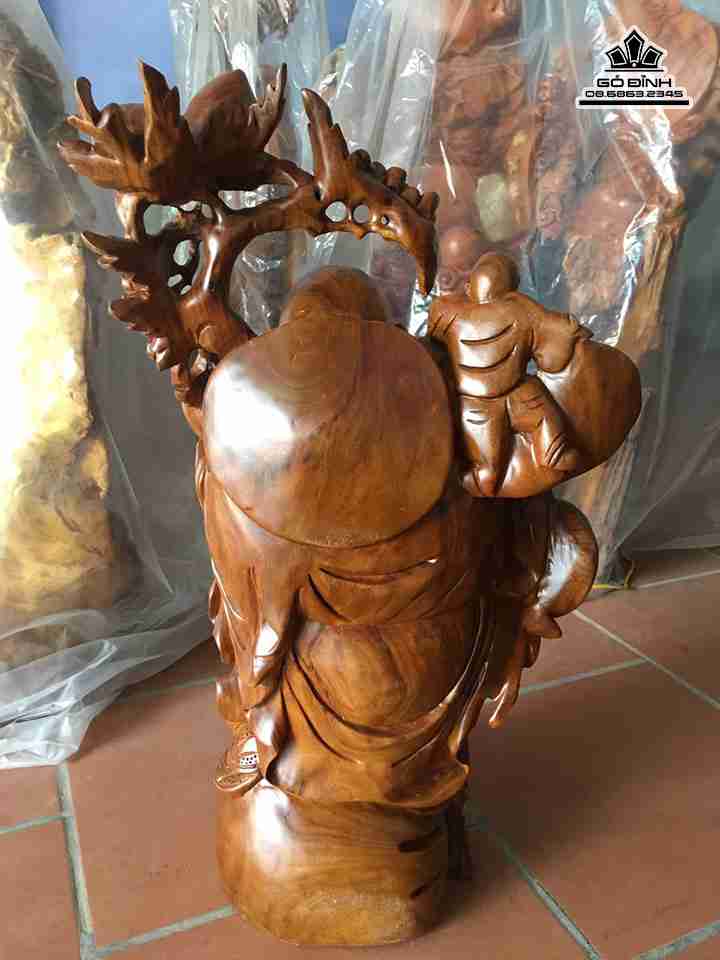 Phật di lặc vác bao tiền gỗ xá xị cao 71 rộng 42 dày 28 (cm)