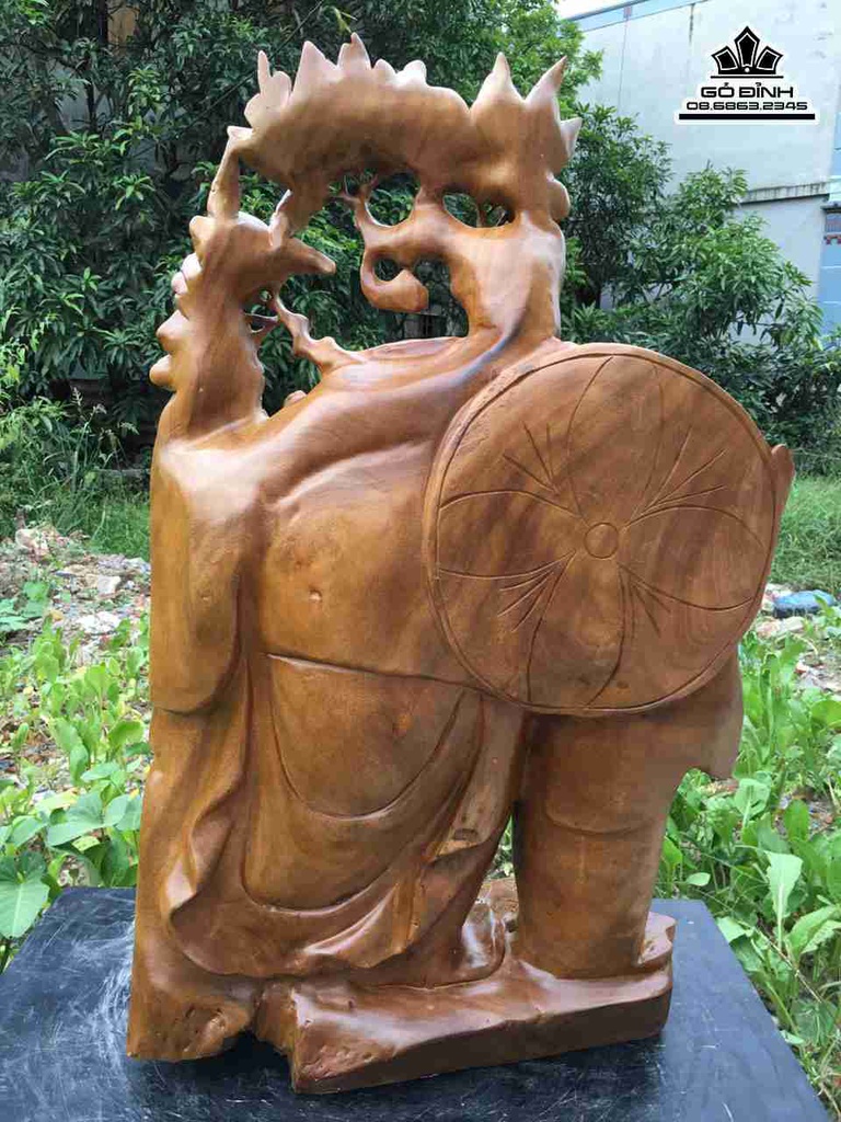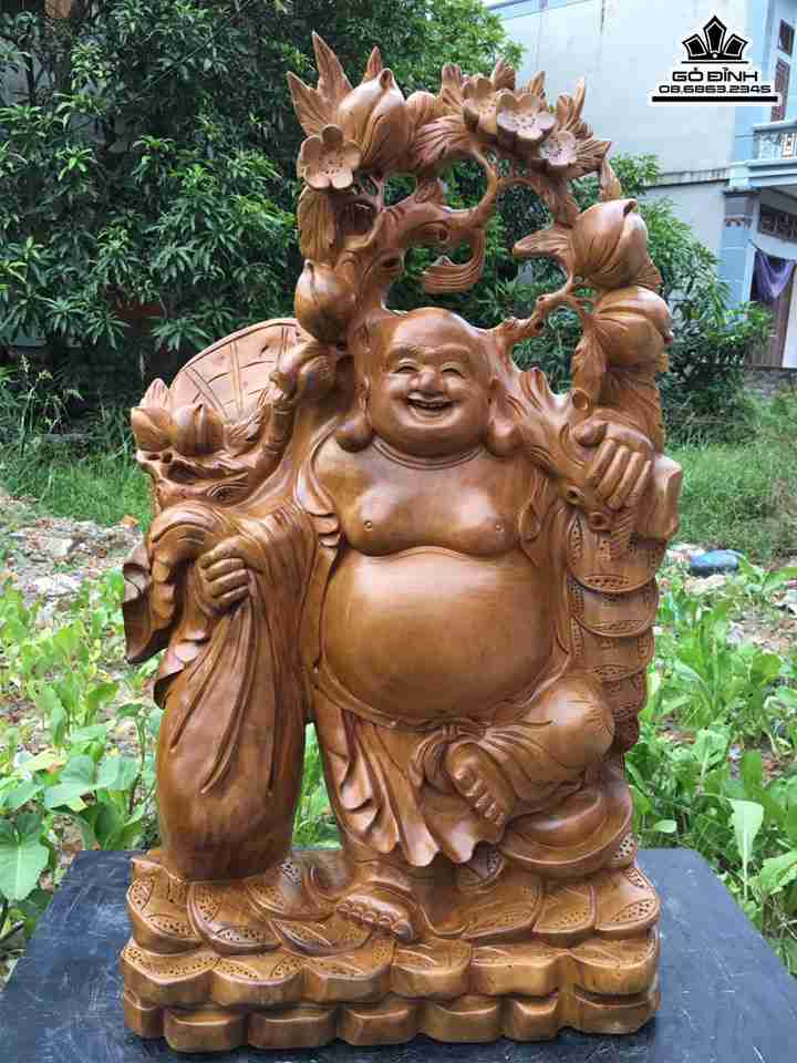 Phật di lặc vác cành đào gỗ xá xị cao 77 rộng 46 dày 22 (cm)