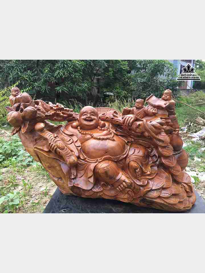 Phật di lặc vác cành đào gỗ xá xị cao 49 rộng 80 dày 32 (cm)