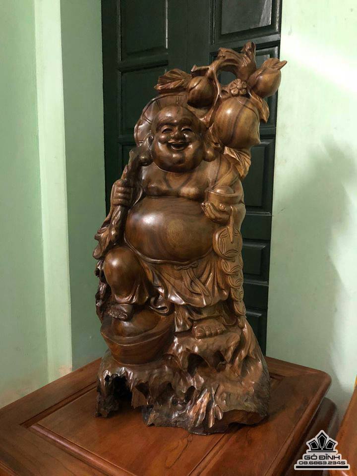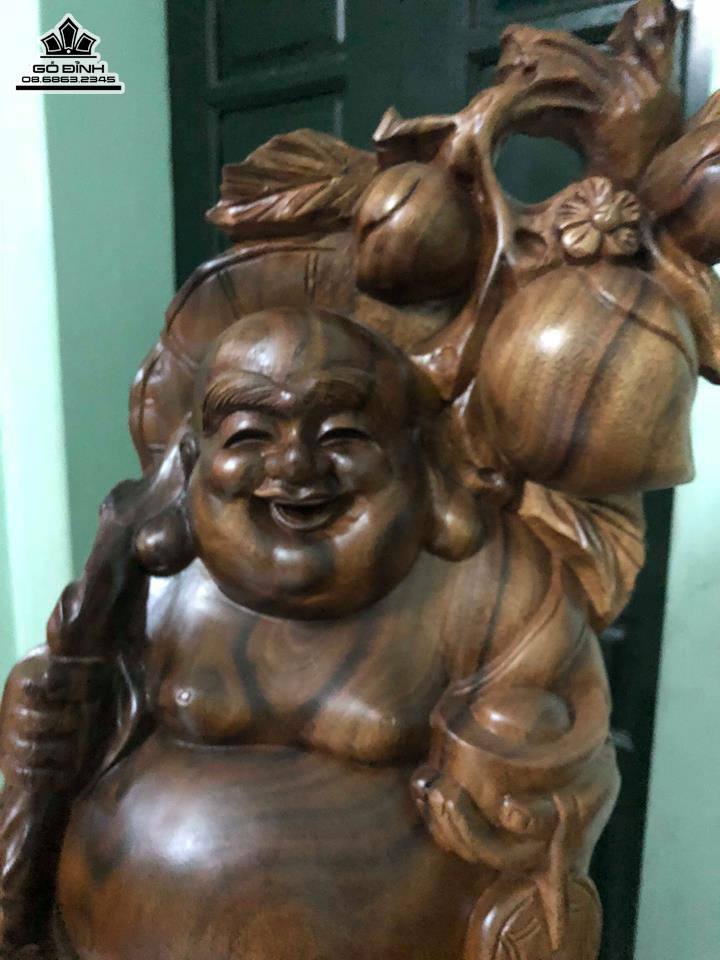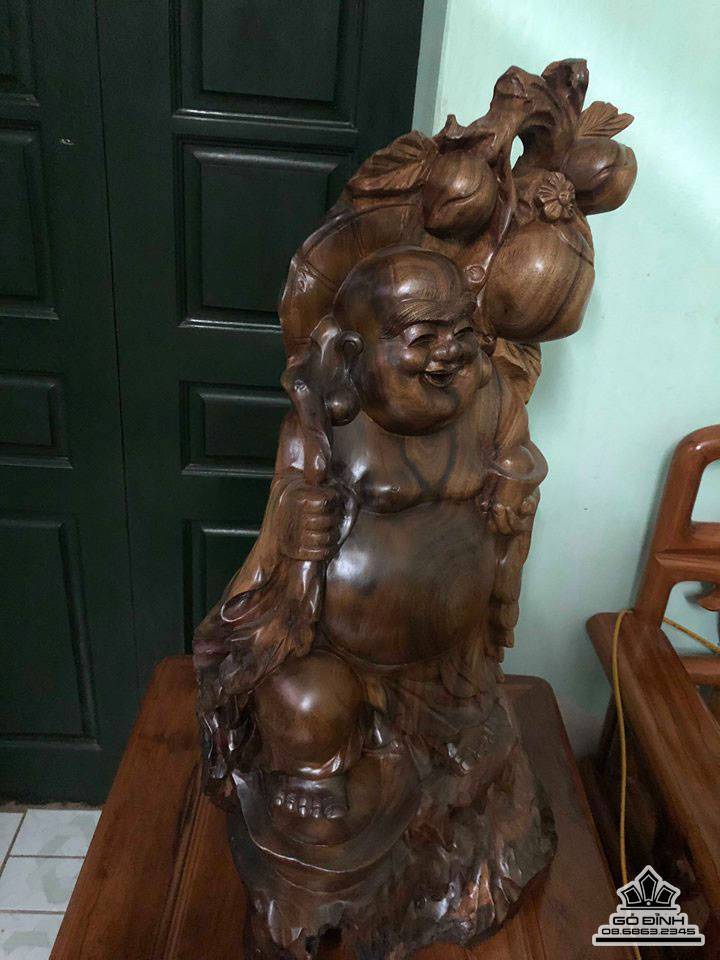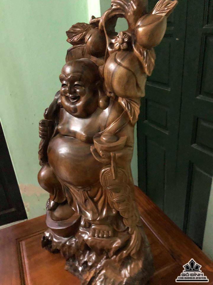 Phật di lặc vác cành đào gỗ xá xị 67x33x17