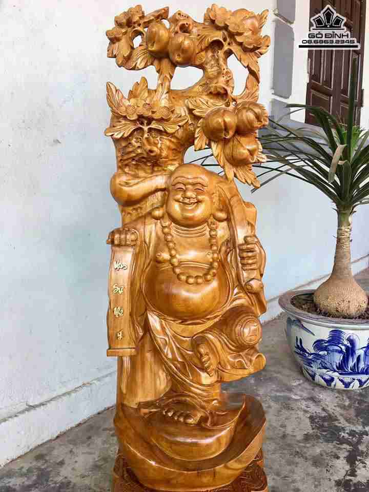 Phật di lặc vác cành đào gỗ xá xị thơm (gù hương) được mô tả với cái bụng thật lớn và cái miệng cười thật tươi, thể hiện mong ước và tâm tư của đạo Phật trong việc đem nụ cười vào cuộc đời. Khi tượng phật di lặc được trưng bày trong nhà, đây được coi là biểu tượng cho sự an lạc, vui vẻ, may mắn và hạnh phúc, mang lại nhiều điều tốt lành cho gia chủ, gia đạo.