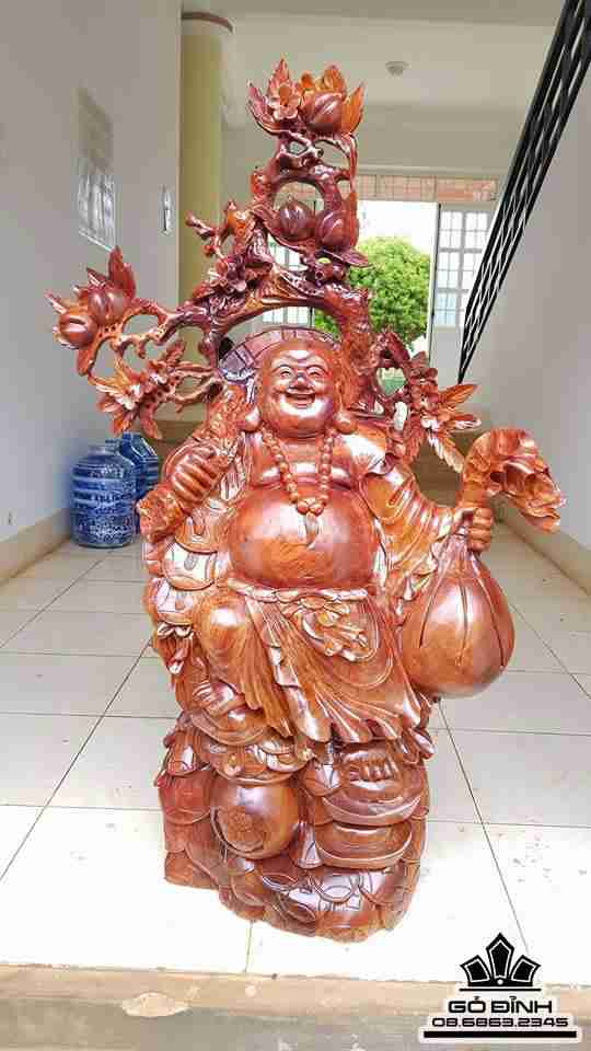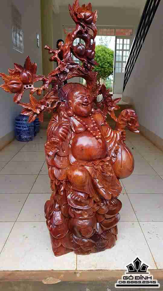 Phật di lặc vác cành dào gỗ hương 1m20x80x33