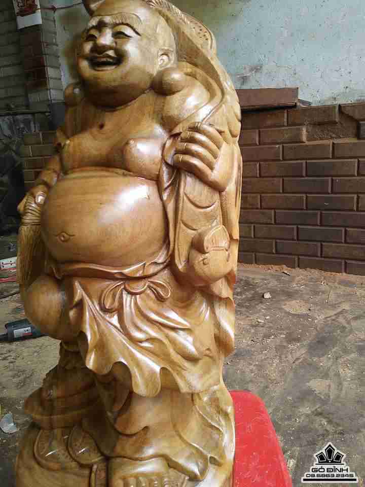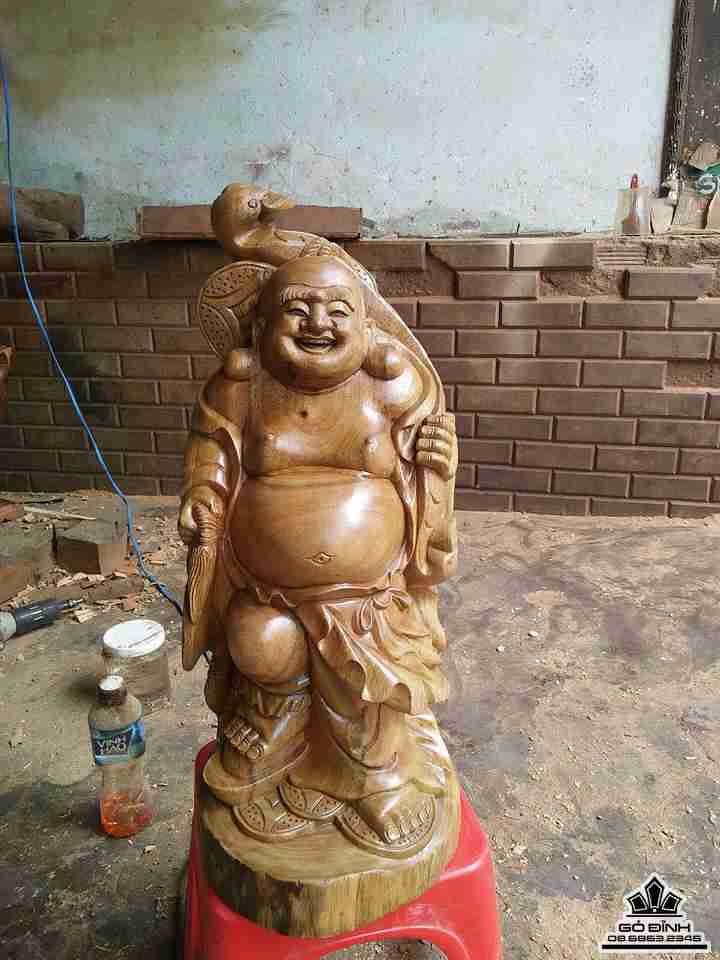 Phật di lặc vác gậy như ý gỗ xá xị thơm 50x20x20