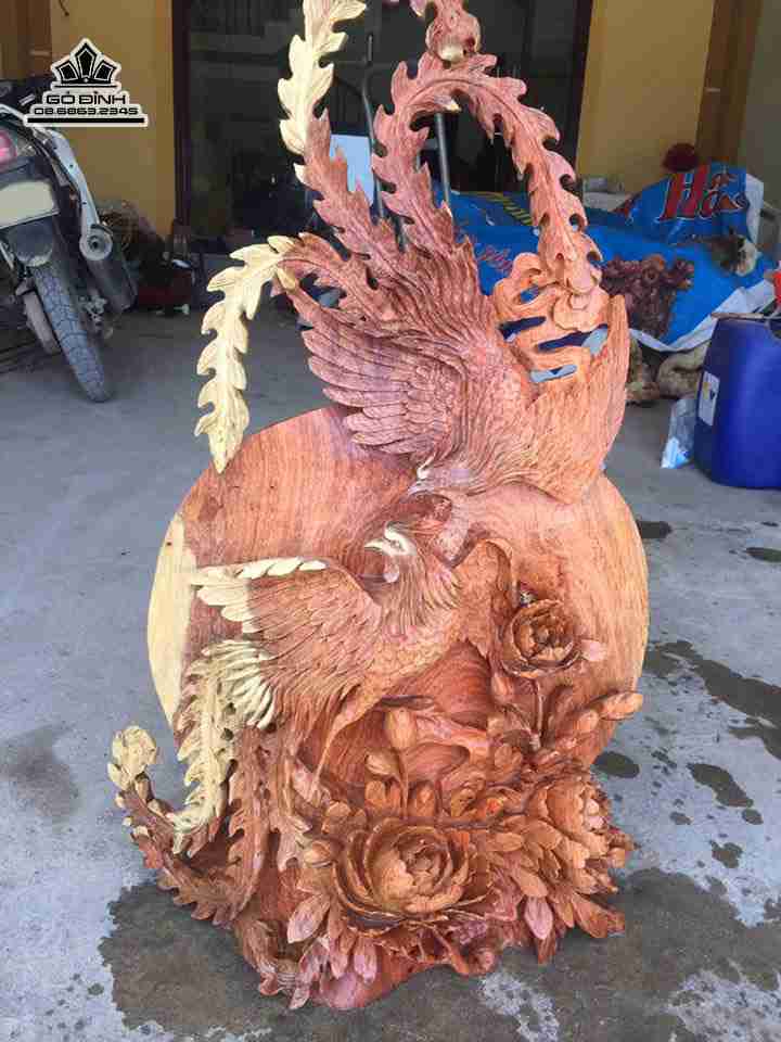 Phu thê viên mãn gỗ hương cao 75 rộng 45 dày 18 (cm)