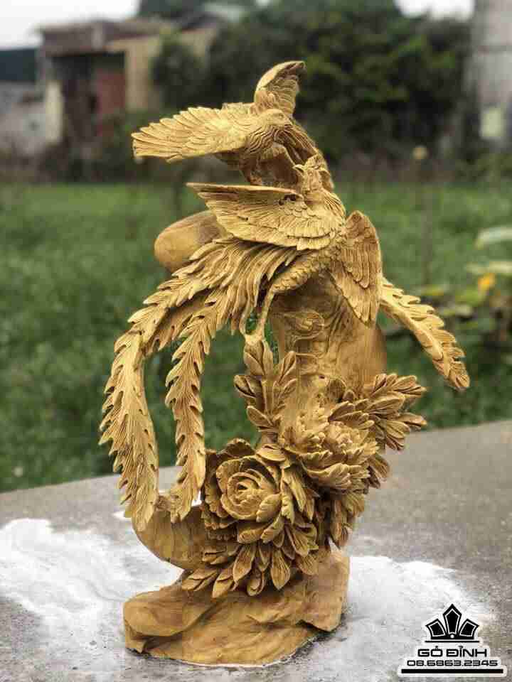 Phu thê viên mãn gỗ nu kháo 65x45x25