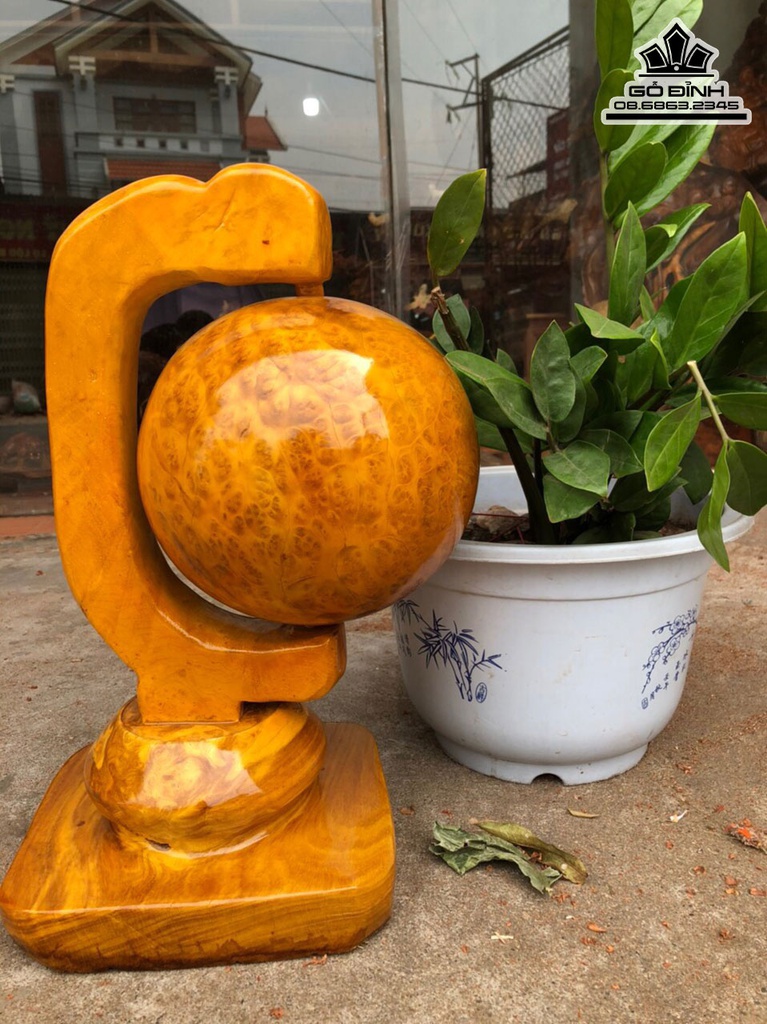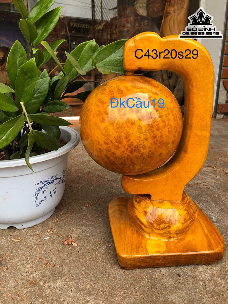 Quả Cầu Gỗ Nu Kháo Cao 43 Ngang 20 Sâu 29 Cầu Đường Kính 19 (cm)