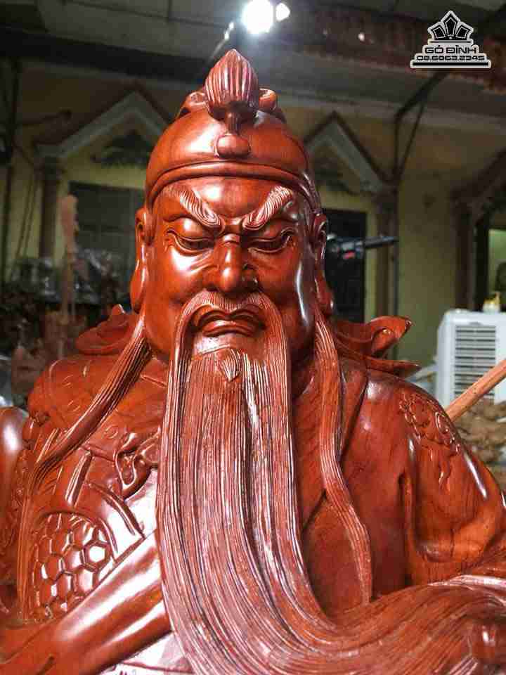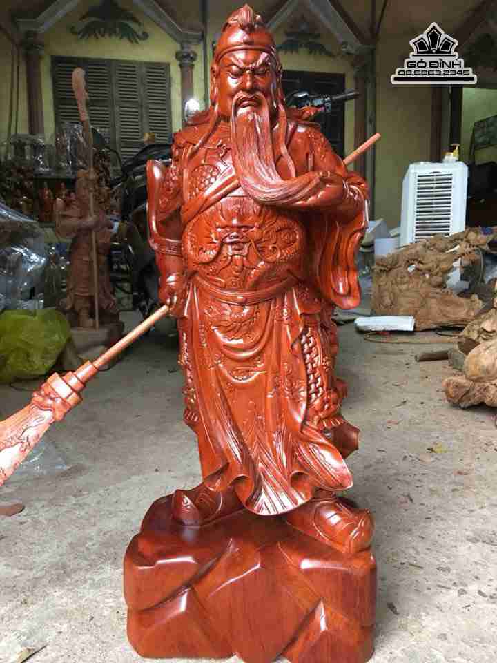 Quan công luôn xuất hiện với hình ảnh khí khái mãnh liệt, gương mặt cương quyết có phần dữ dằn, mặt đỏ và dâu dài, trên tay cầm long đao luôn trong tư thế sẵn sàng. Tượng Quan Công có gương mặt càng dữ thì hiệu quả bảo vệ càng mạnh. Với tướng đứng hùng dùng trên tay cầm thanh đao, gương mặt cương nghị thể hiện khí khái anh hùng không thể dễ dàng khuất phục, không những dùng để trang trí mà còn góp phần tạo nên sự uy nghiêm, trang trọng cho căn phòngcủa bạn.