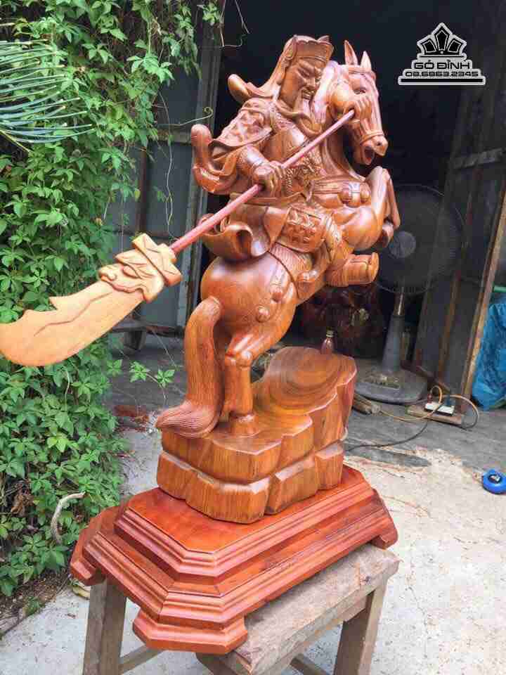 Quan công cưỡi ngựa gỗ hương cao 66 rộng 46 dày 26 (cm)