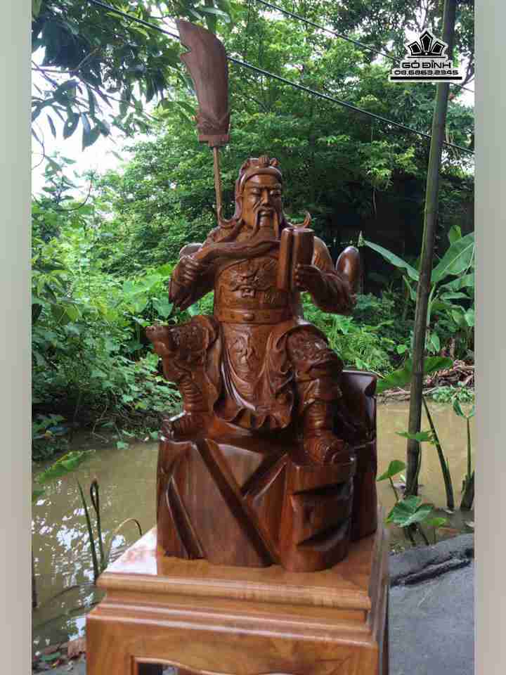 Quan công luôn xuất hiện với hình ảnh khí khái mãnh liệt, gương mặt cương quyết có phần dữ dằn, mặt đỏ và dâu dài, trên tay cầm long đao luôn trong tư thế sẵn sàng. Tượng Quan Công có gương mặt càng dữ thì hiệu quả bảo vệ càng mạnh. Với tướng đứng hùng dùng trên tay cầm thanh đao, gương mặt cương nghị thể hiện khí khái anh hùng không thể dễ dàng khuất phục, không những dùng để trang trí mà còn góp phần tạo nên sự uy nghiêm, trang trọng cho căn phòngcủa bạn.