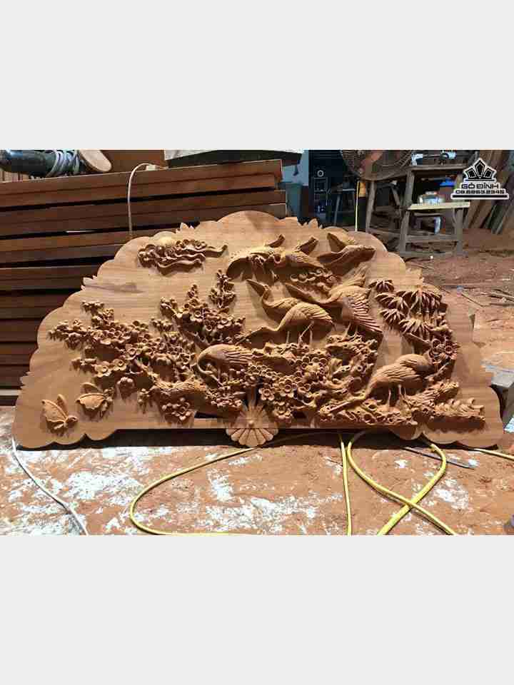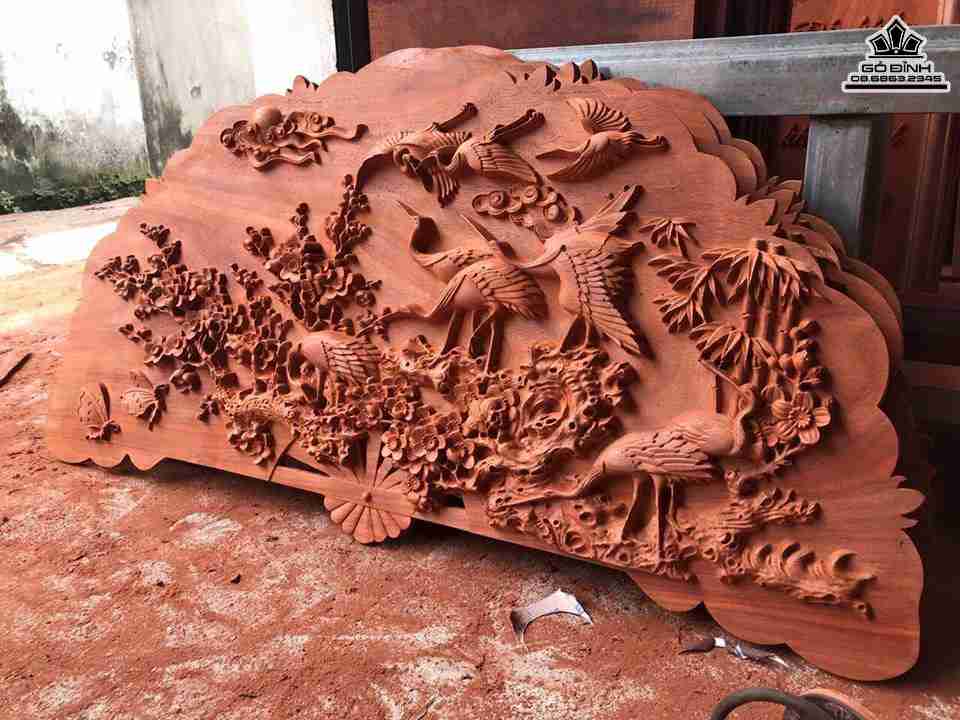 Quạt cửu hạc du xuân gỗ hương dài 110 rộng 55 dày 4,5 (cm)