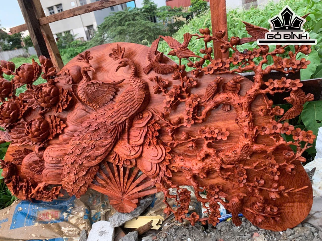 Quạt Phu Thê Viên Mãn Gỗ Hương Kích Thước 60x120x8 (cm)
