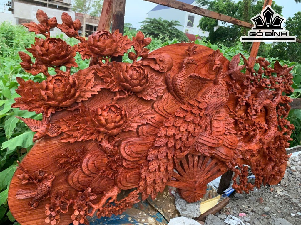 Quạt Phu Thê Viên Mãn Gỗ Hương Kích Thước 60x120x8 (cm)