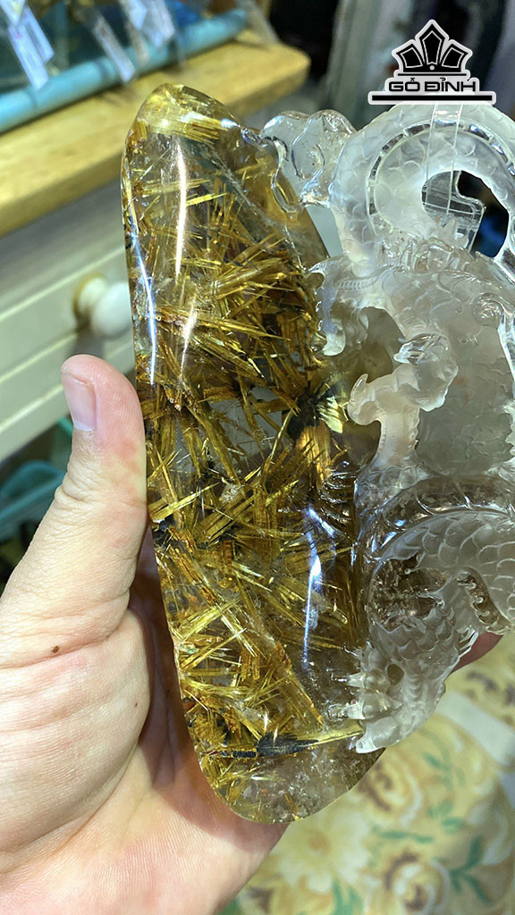 Rồng Hoa Thị Đá Thạch Anh Tóc Vàng Cao 15,6 Ngang 10,2 Sâu 8,5 (cm) 0,7kg