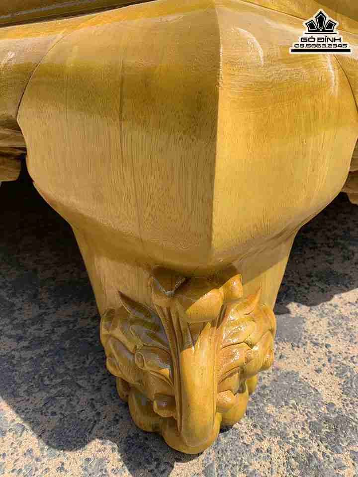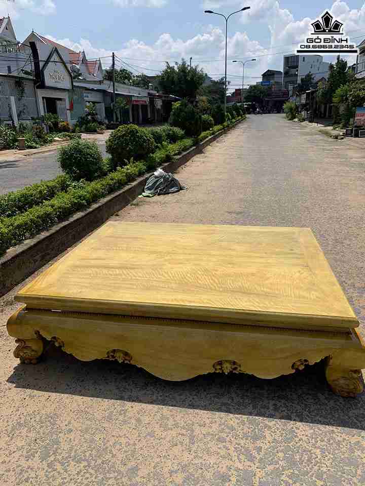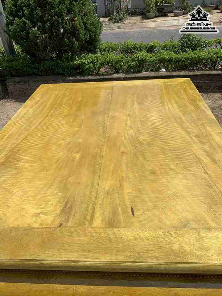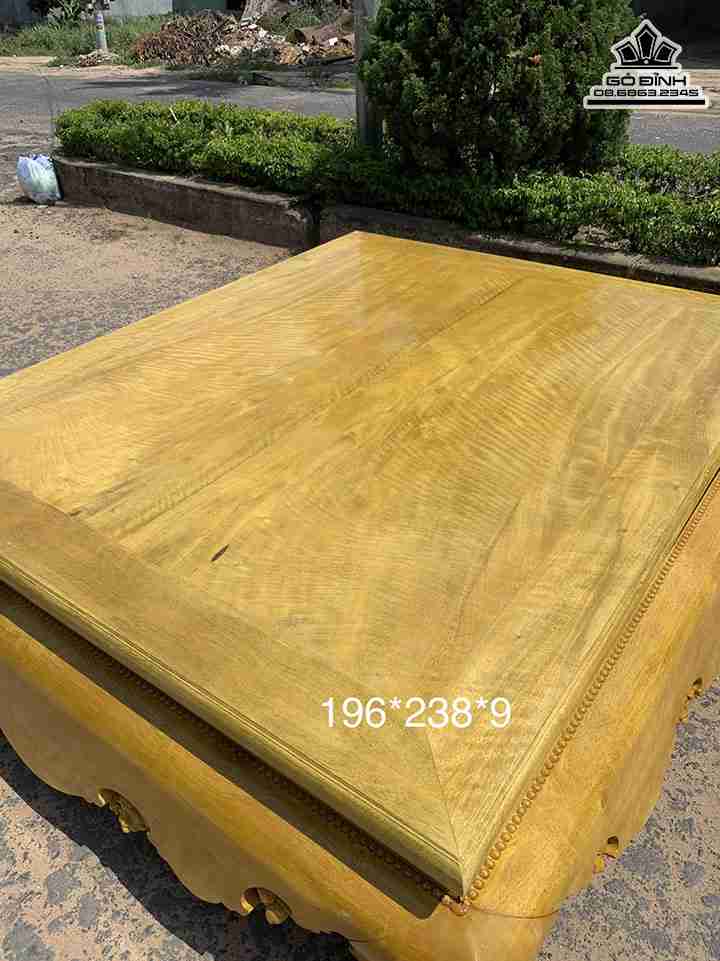 Sập Gỗ Phay Vàng Rộng 196 Dày 238 Cao 50 Ván 2.5 Chân Vuông 25 Quây Dày 10 (cm)