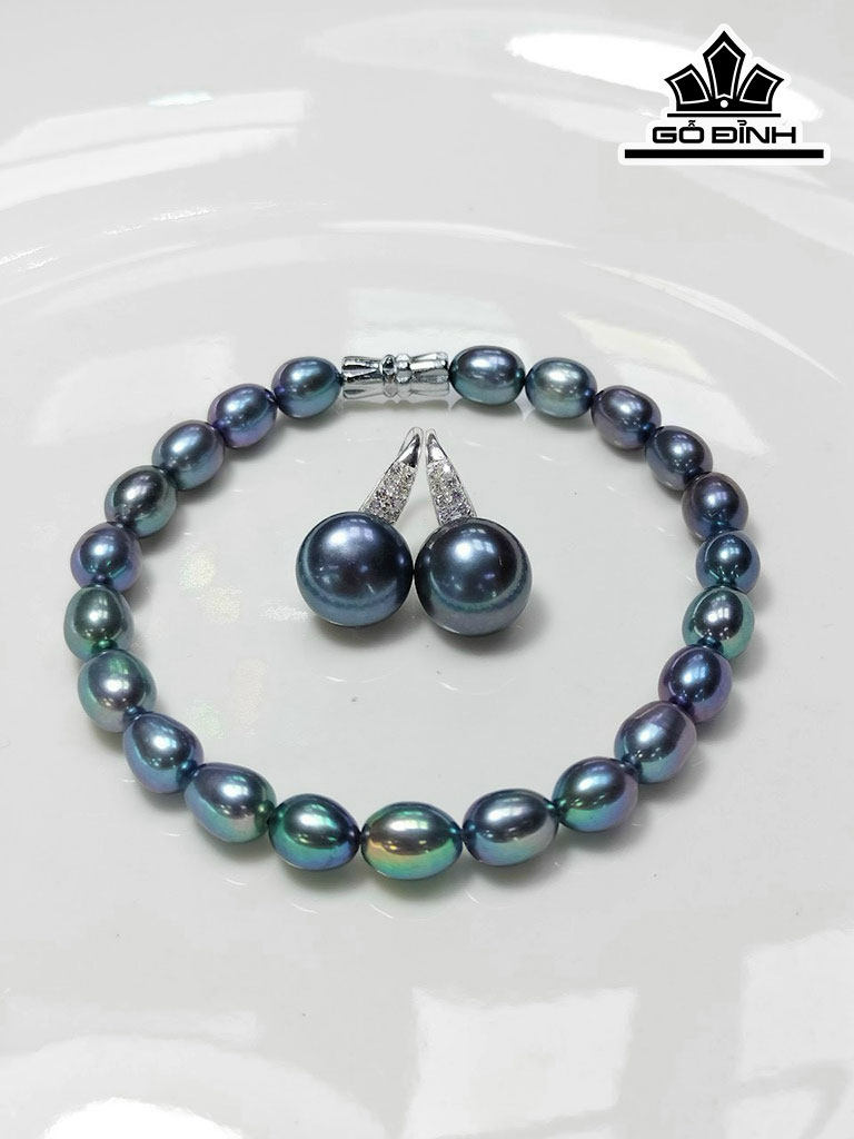 Set 2 Món Ngọc Trai Bán Cầu Xanh Đen Size 5-6 li