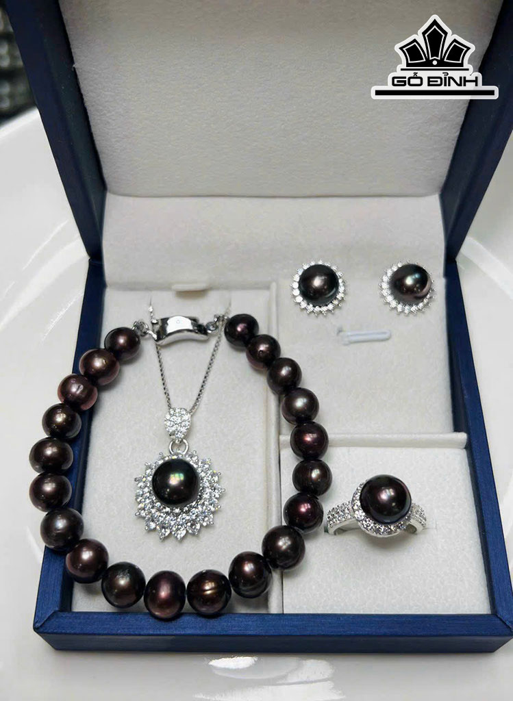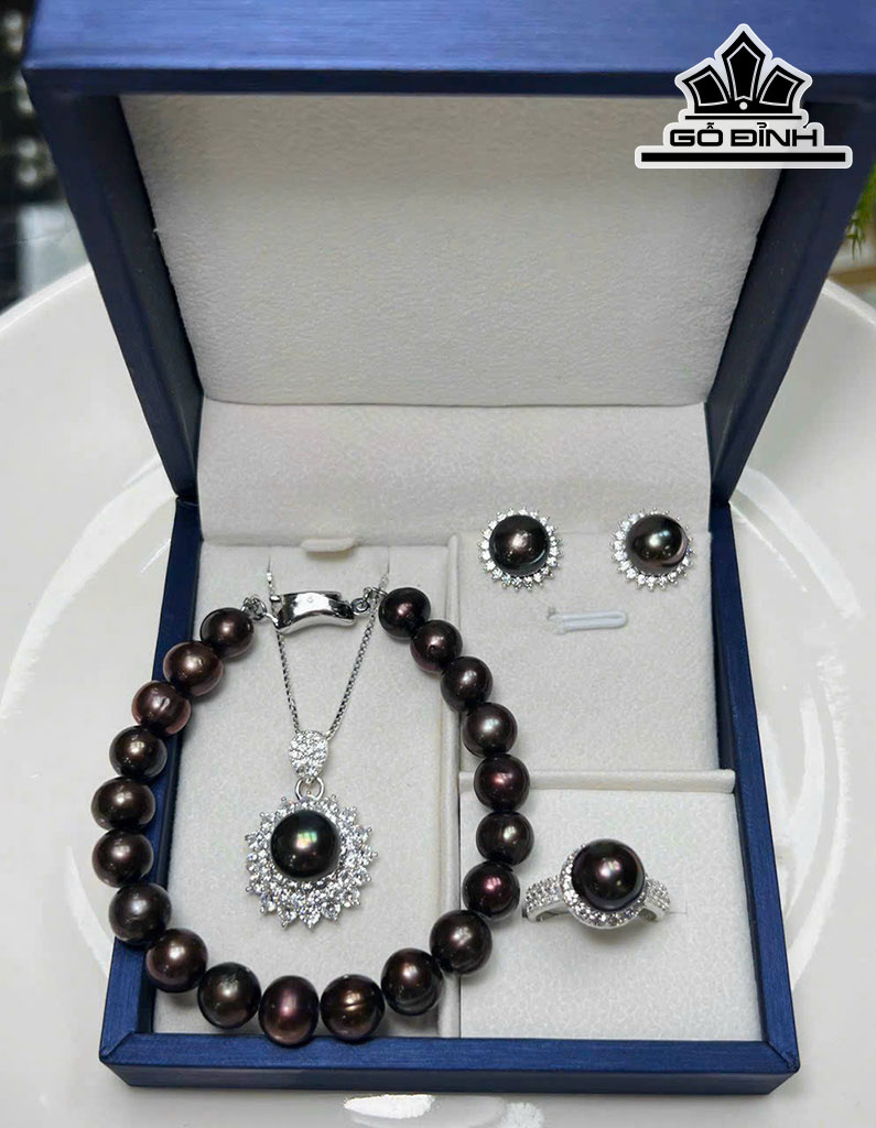 Set 4 Món Dây Chuyền Ngọc Trai Bán Cầu Xanh Đen Size 8 - 9 Li