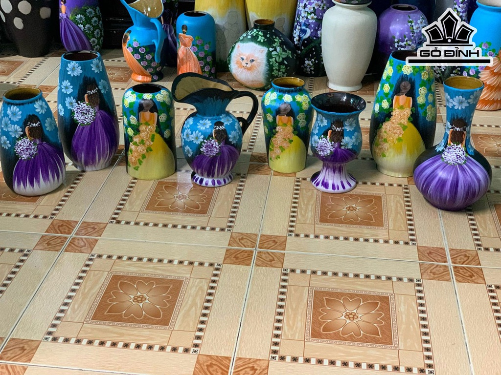 Set 8 Bình Vẽ Cô Gái Gốm Bát Tràng