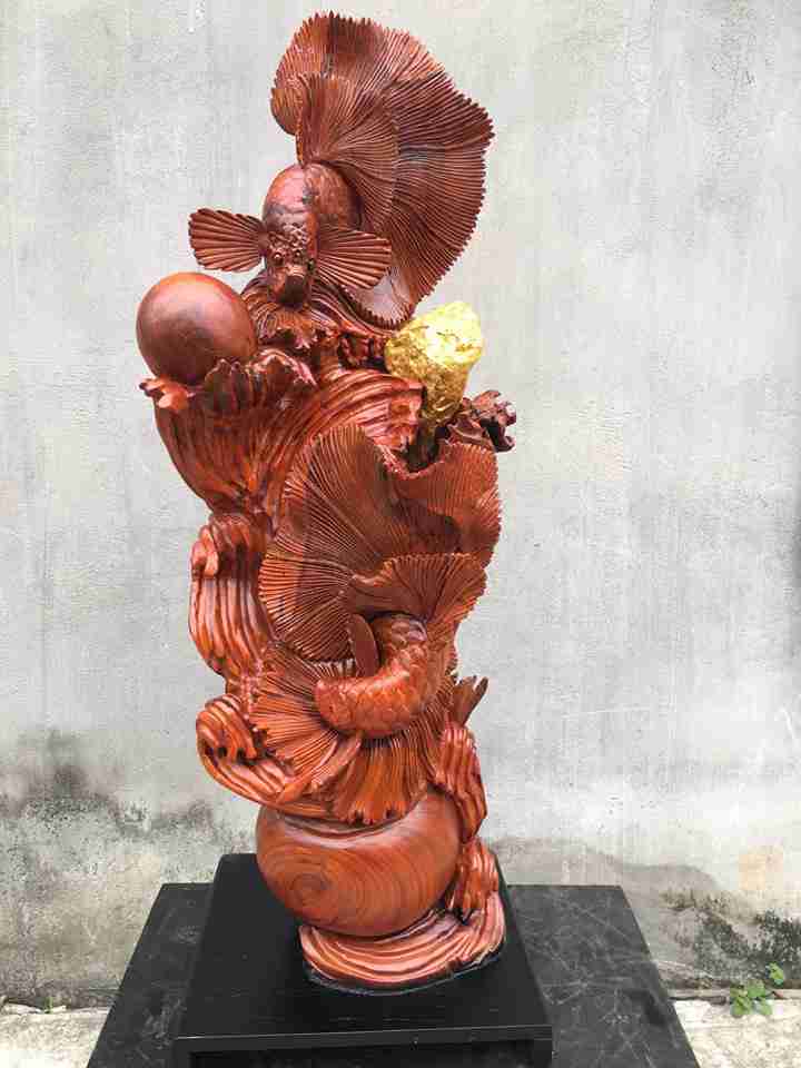 Song ngư gỗ hương cao 1m15 rộng 42 dày 38 (cm)