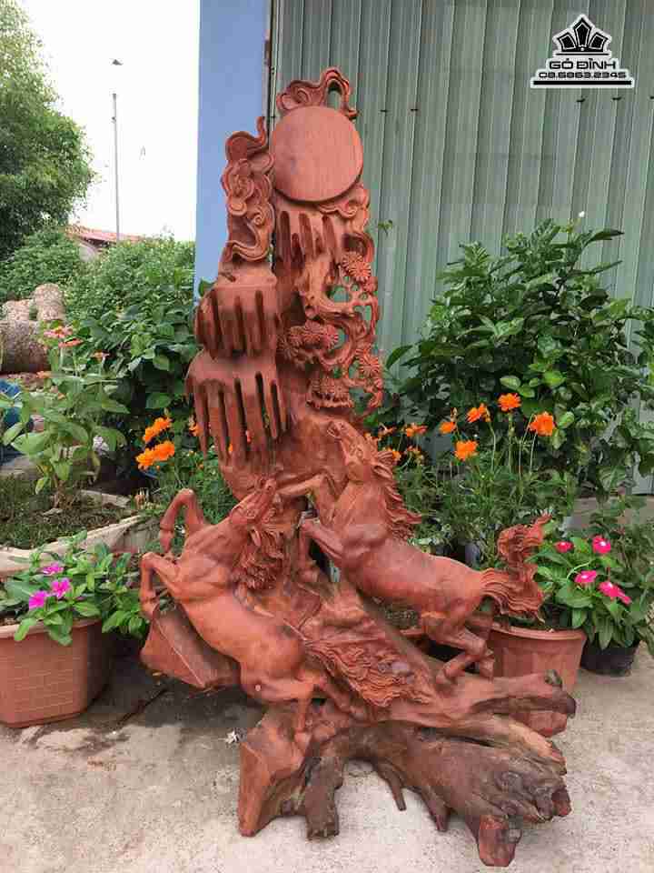 Song mã uyên ương gỗ hương cao 98 rộng 62 dày 33 (cm)