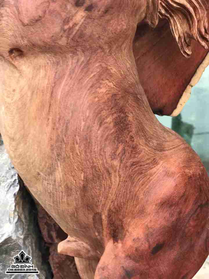 Song mã uyên ương gỗ hương ôm đá cao 115 rộng 90 dày 40 (cm)