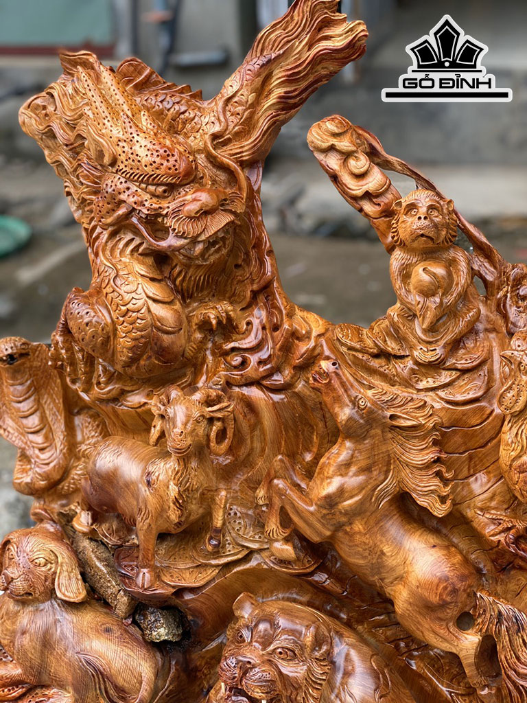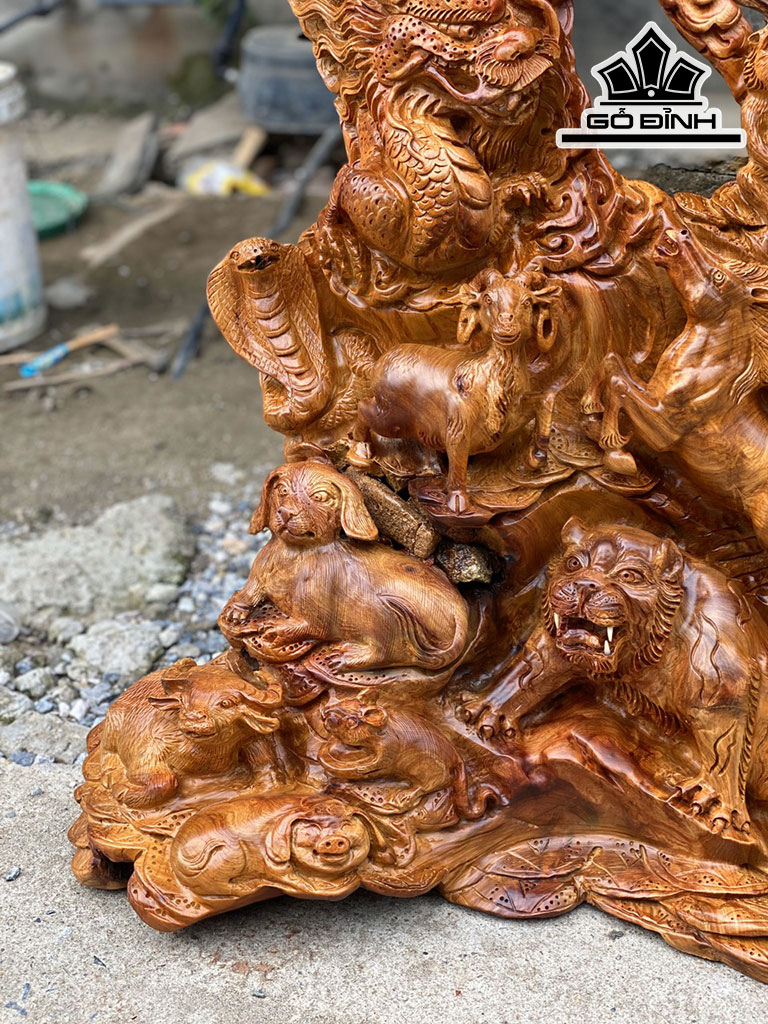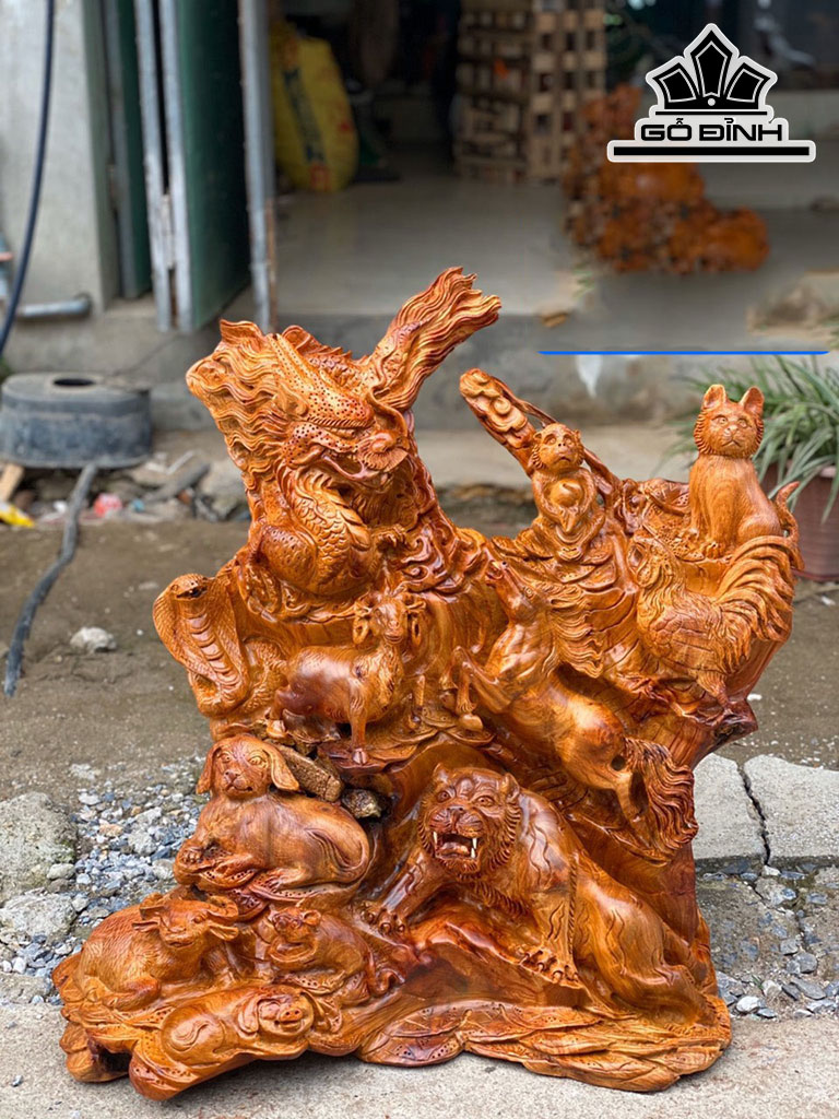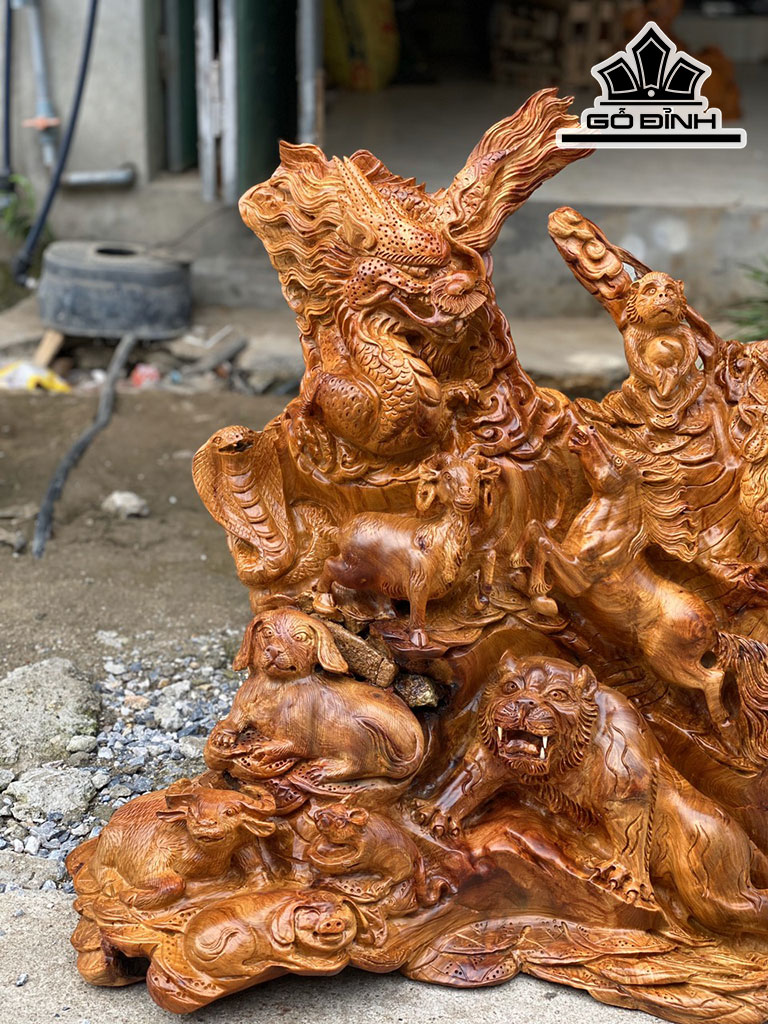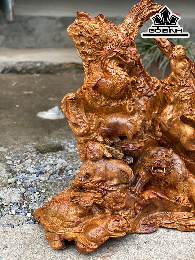 Tác Phẩm 12 Con Giáp Gỗ Hương Cao 70 Ngang 66 Sâu 32 (cm)