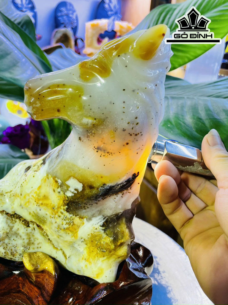 Tác Phẩm Bạch Mã Đá Mã Não Cao 33 Ngang 17 (cm) 4kg