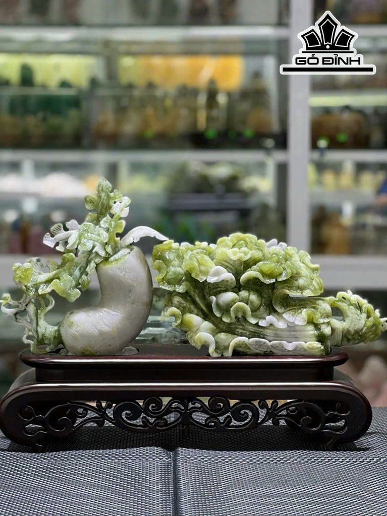 Tác Phẩm Bắp Củ Cải Tài Lộc Đá Serpentine Cao 36 Ngang 50 (cm) 8kg