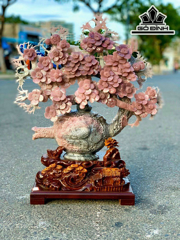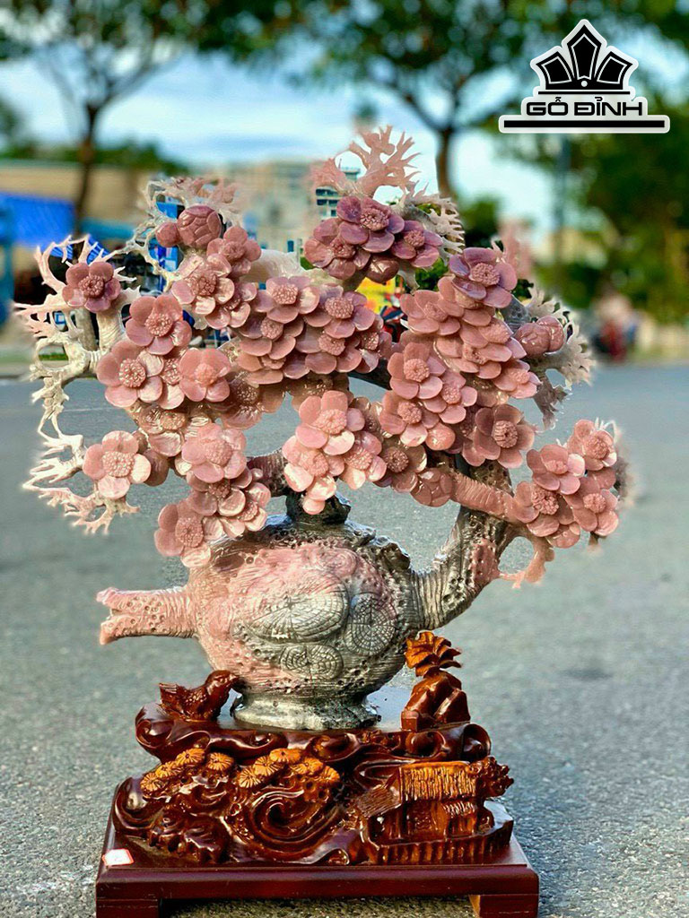 Tác Phẩm Bình Hoa Đào Đá Thọ Sơn Cao 56 Ngang 50 (cm) 12,5kg