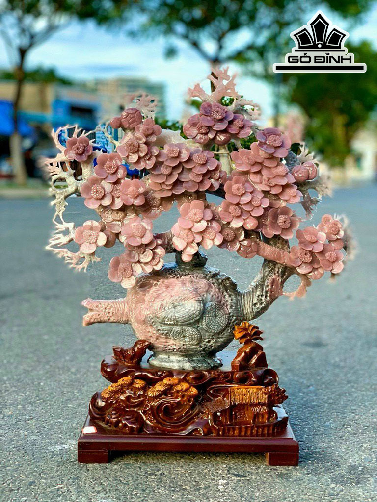 Tác Phẩm Bình Hoa Đào Đá Thọ Sơn Cao 56 Ngang 50 (cm) 12,5kg