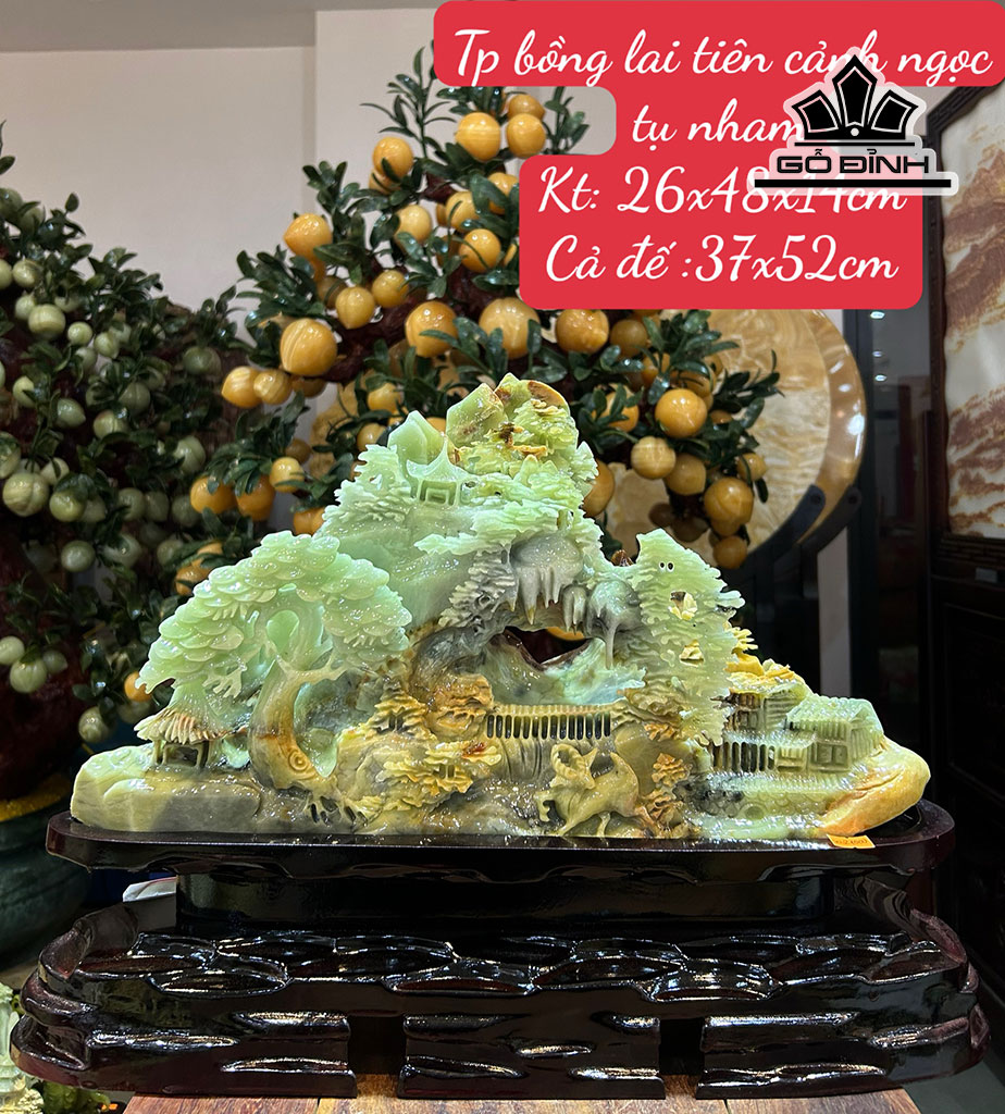 Tác Phẩm Bồng Lai Tiên Cảnh Đá Serpentine Cao 37 Ngang 52 Riêng Đá Cao 26 Ngang 48 Sâu 14 (cm)