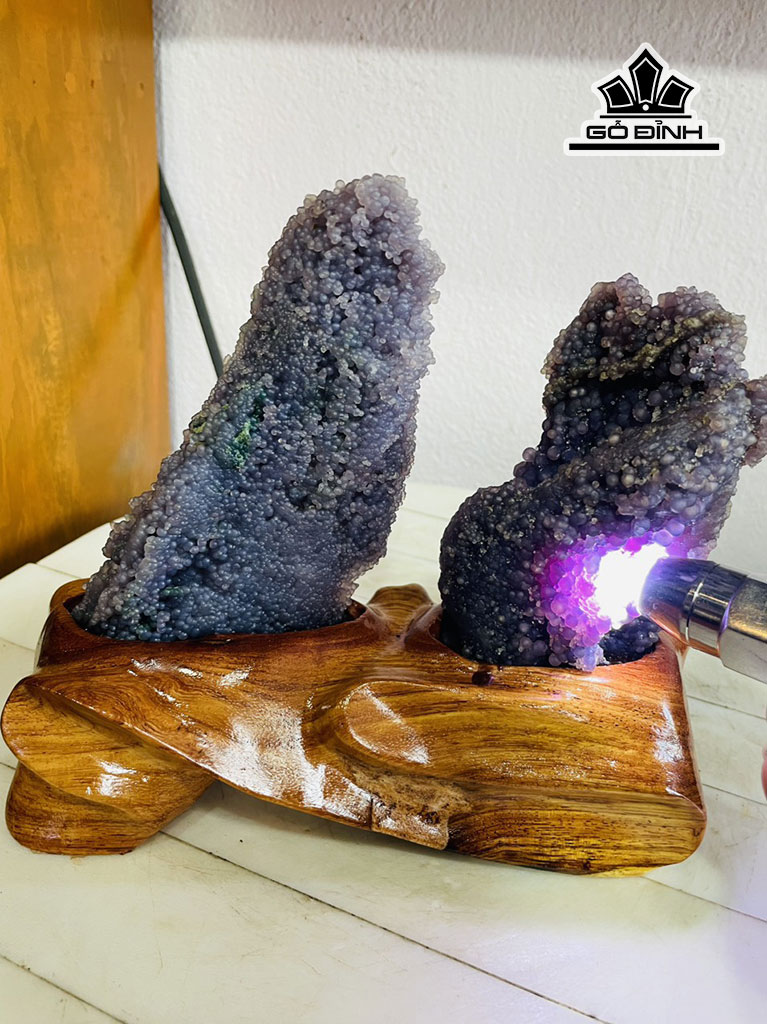 Tác Phẩm Cặp Đá Mã Não Nho Tím Cao 20 Ngang 18 (cm) 1,5kg