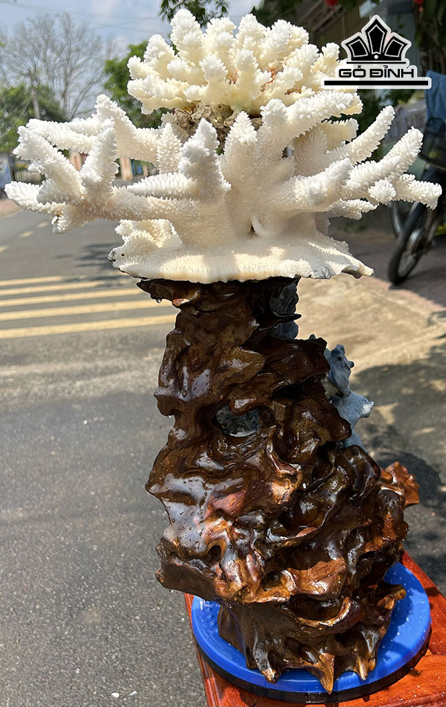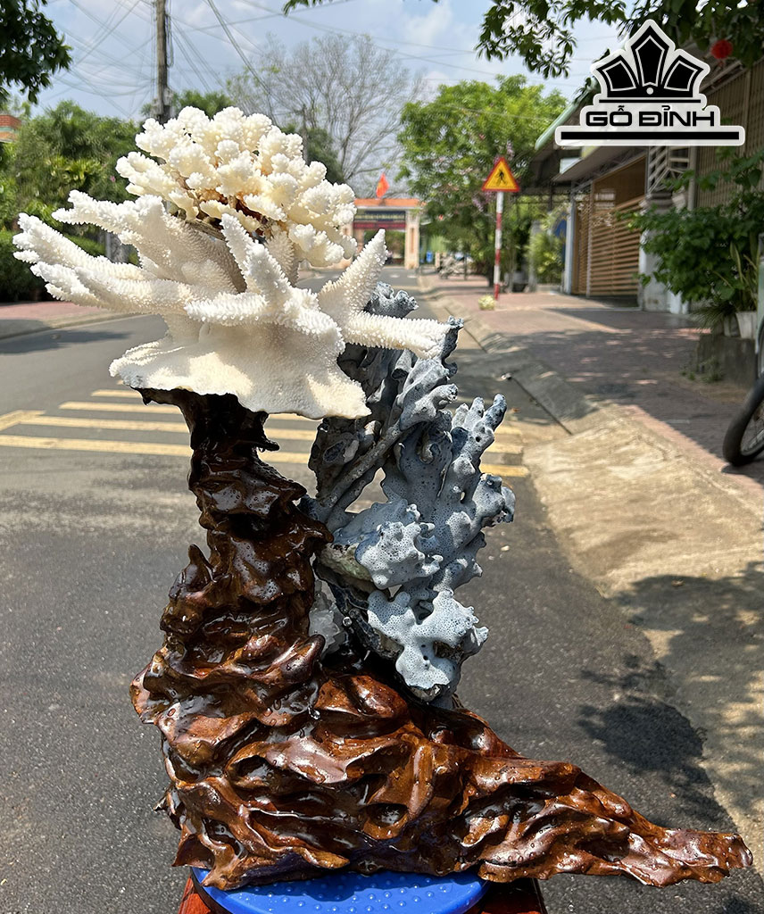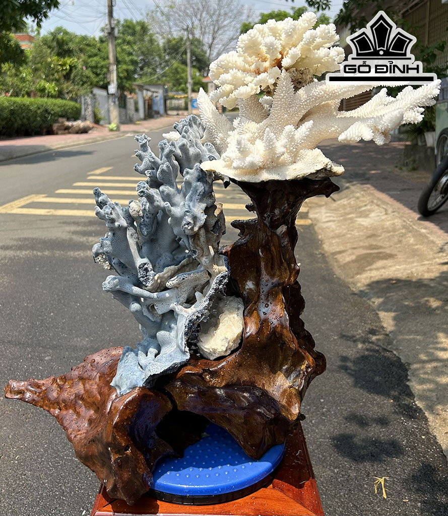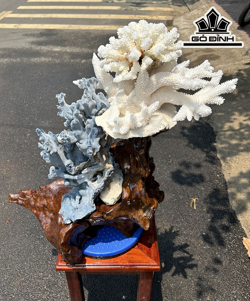 Tác Phẩm Cây San Hô Xanh Trắng Kết Hợp Cao 63 Ngang 33 (cm)