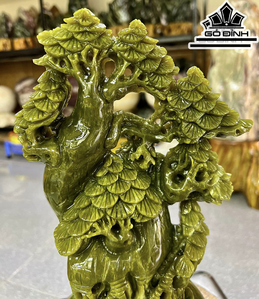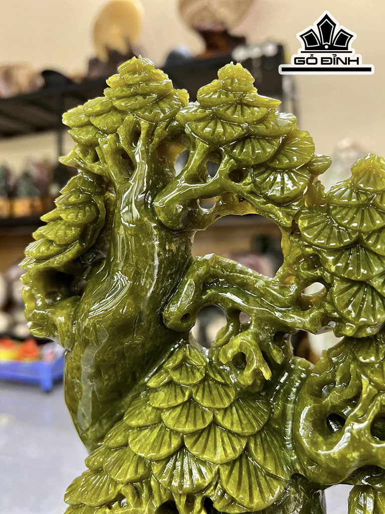 Tác Phẩm Cây Tùng Đá Serpentine Cao 31 Ngang 16 Sâu 14 (cm) 4,5kg