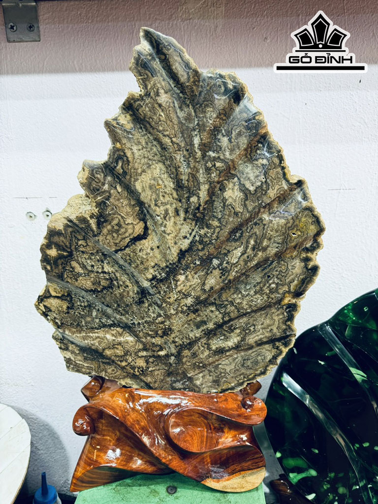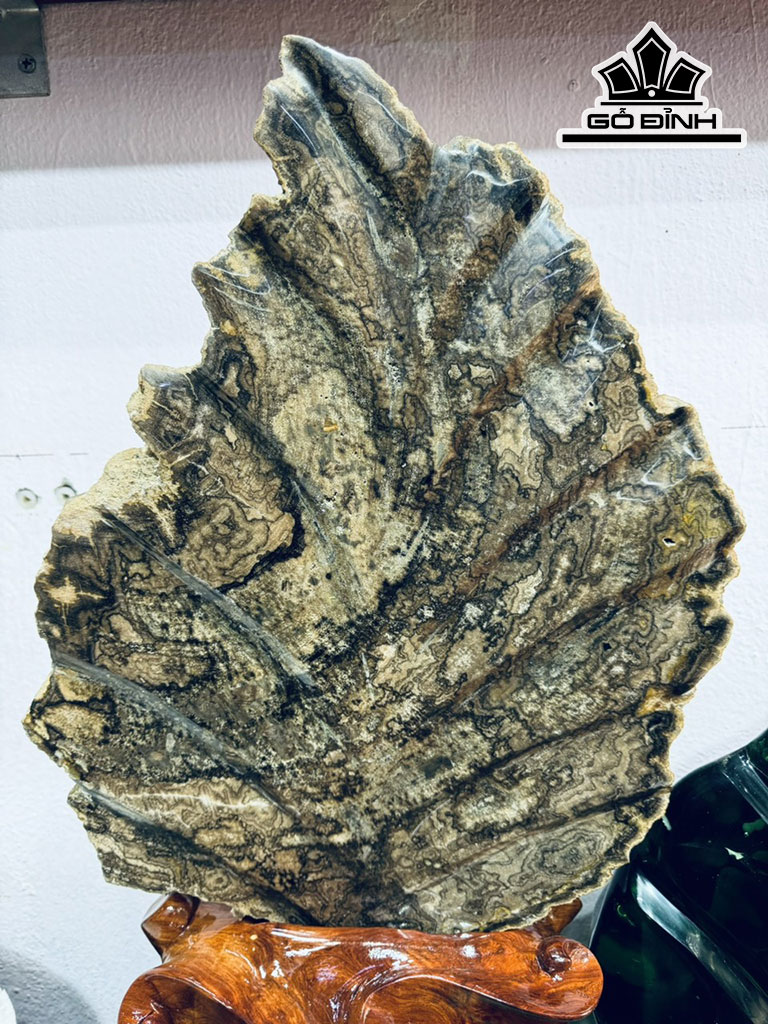 Tác Phẩm Chiếc Lá Gỗ Thủy Tùng Hóa Thạch Cao 56 Ngang 37 (cm) 11,6kg