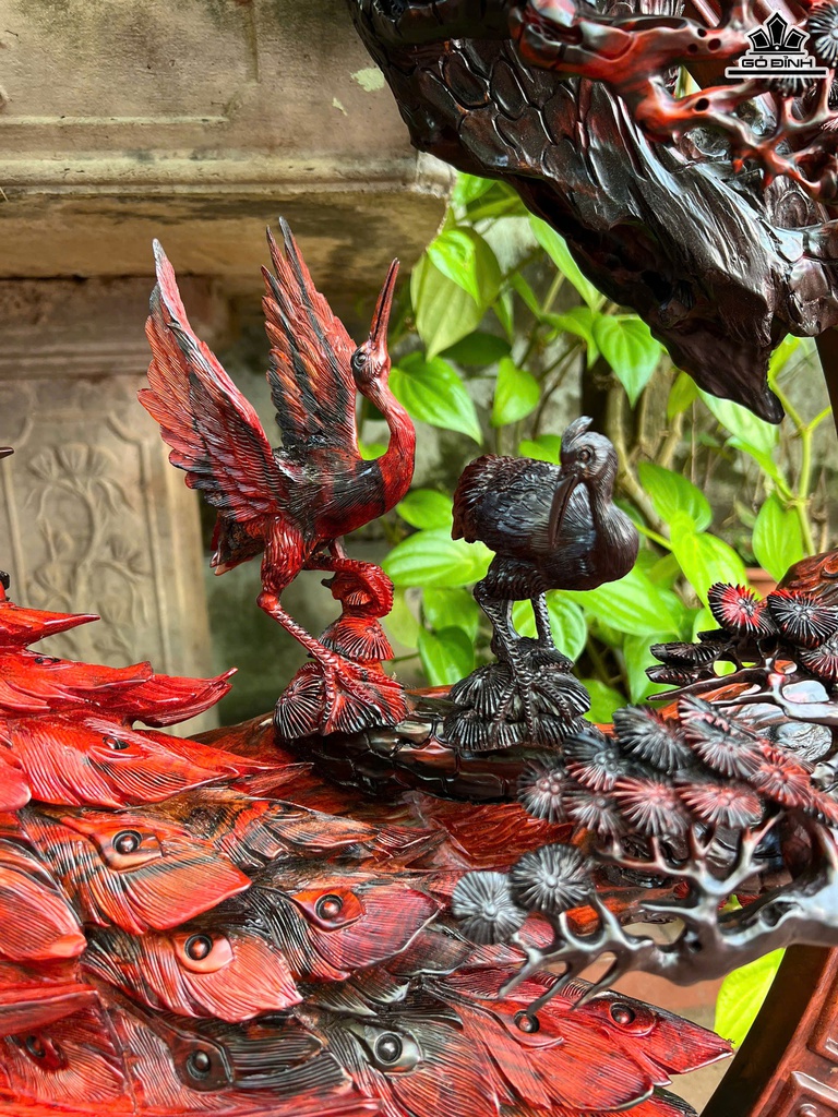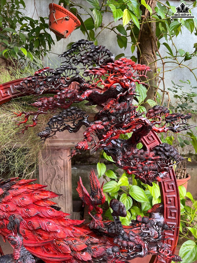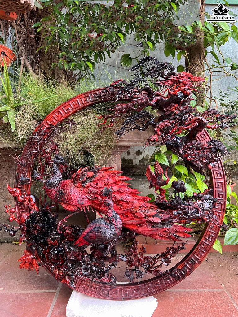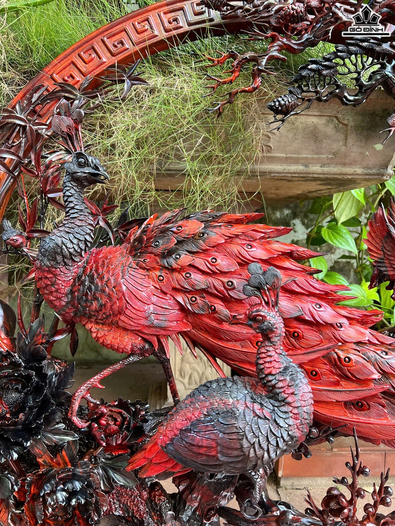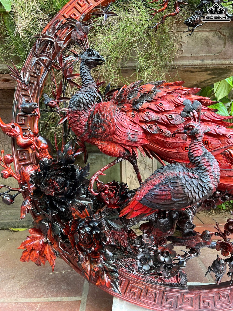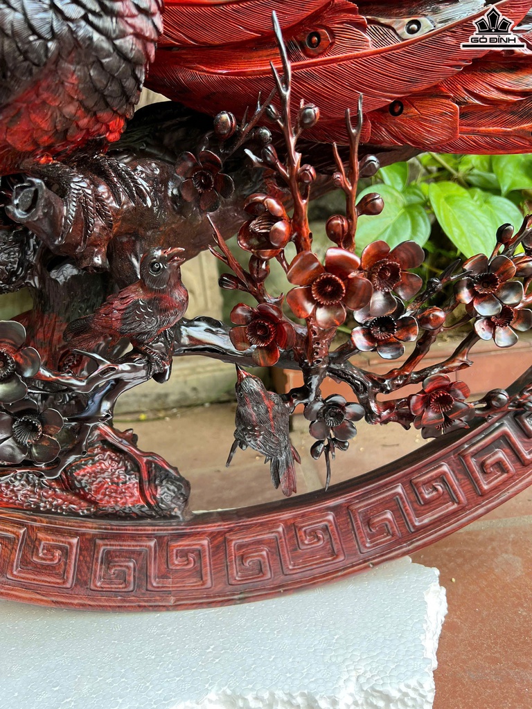 Tác Phẩm Chim Công Uyên Ương Bốn Mùa Gỗ Trắc Cao 110 Ngang 105 Sâu 23 (cm)