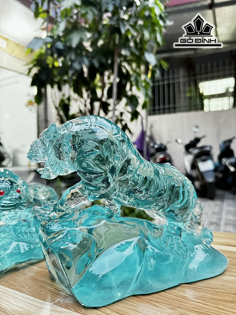 Tác Phẩm Con Hổ Đá Thủy Tinh Cao 20 Ngang 20 Sâu 15 (cm) 4kg