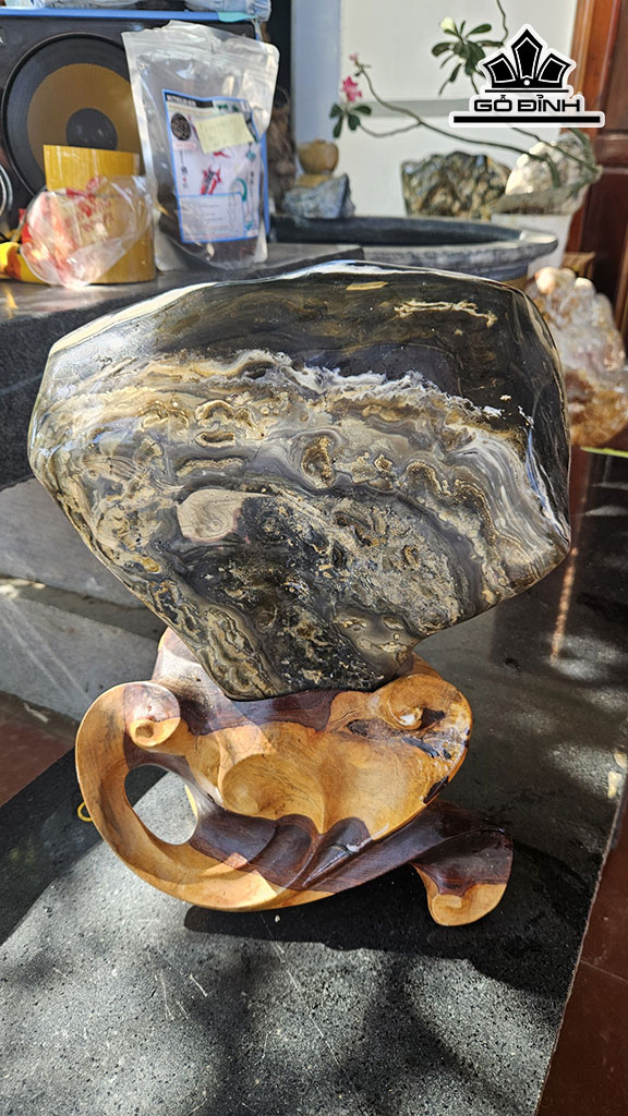 Tác Phẩm Đá Canxedon Xanh Đen Vân Mây Cao 39 Ngang 30 (cm) 11kg