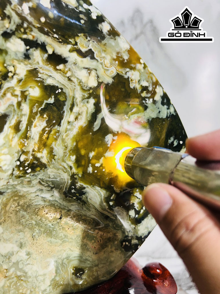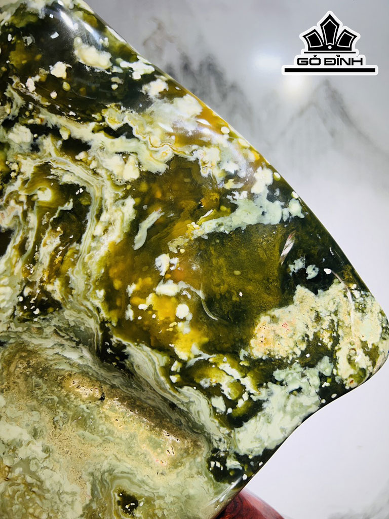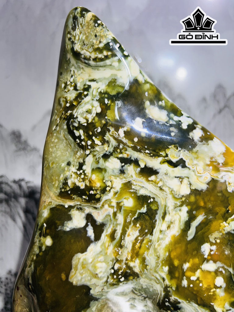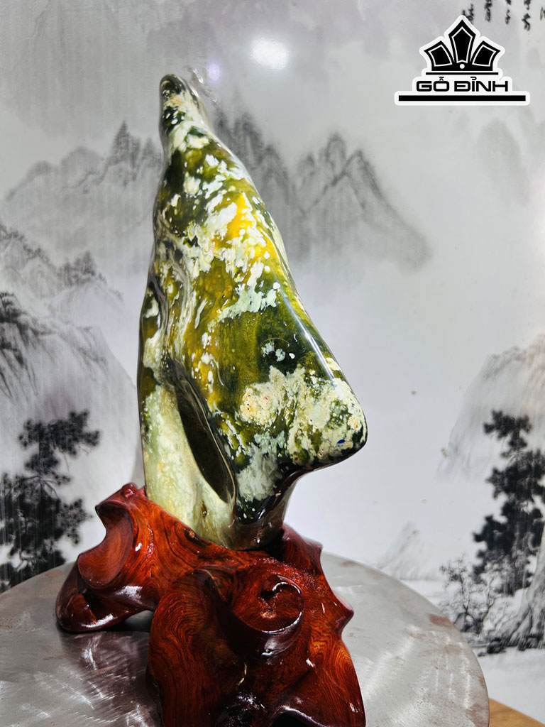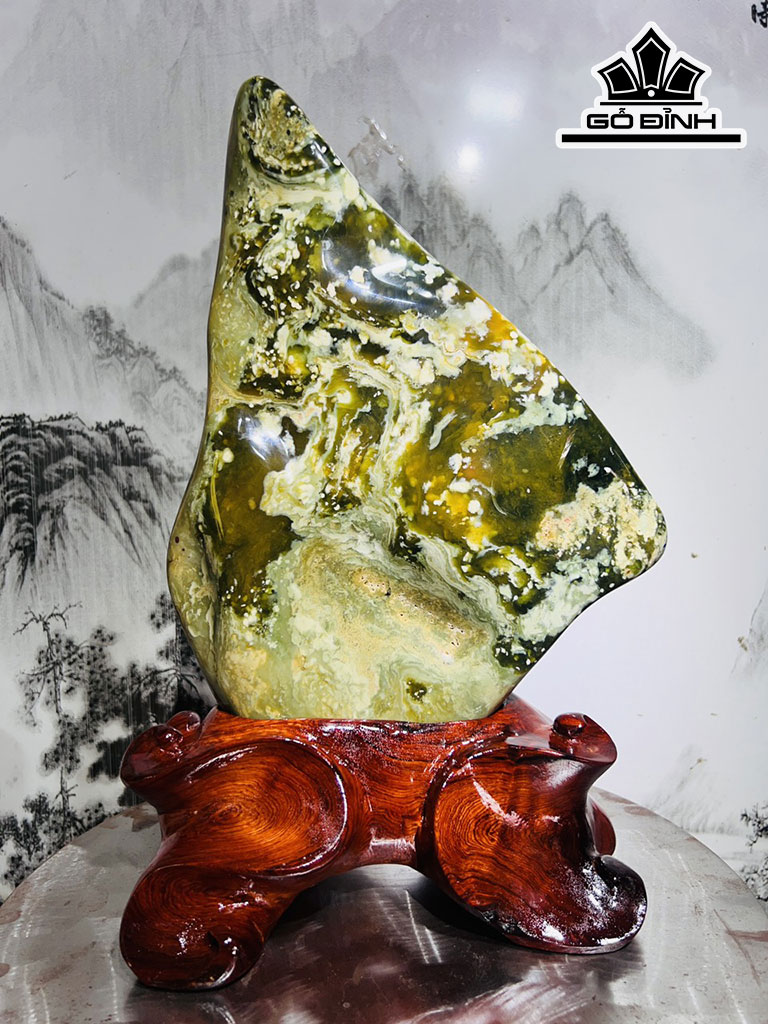 Tác Phẩm Đá Canxedon Xanh Vàng Cao 39 Ngang 24 (cm) 5,9kg