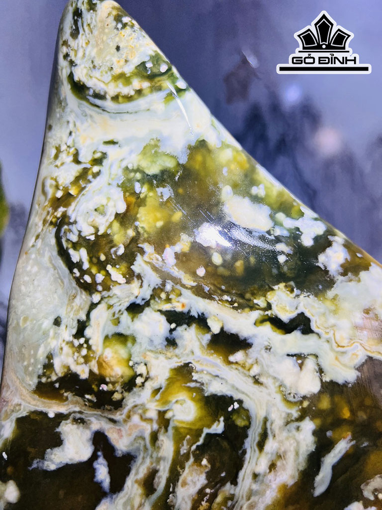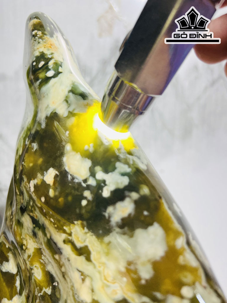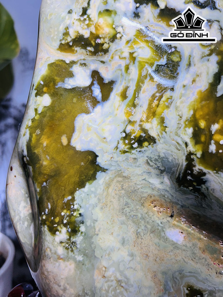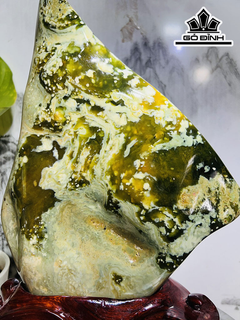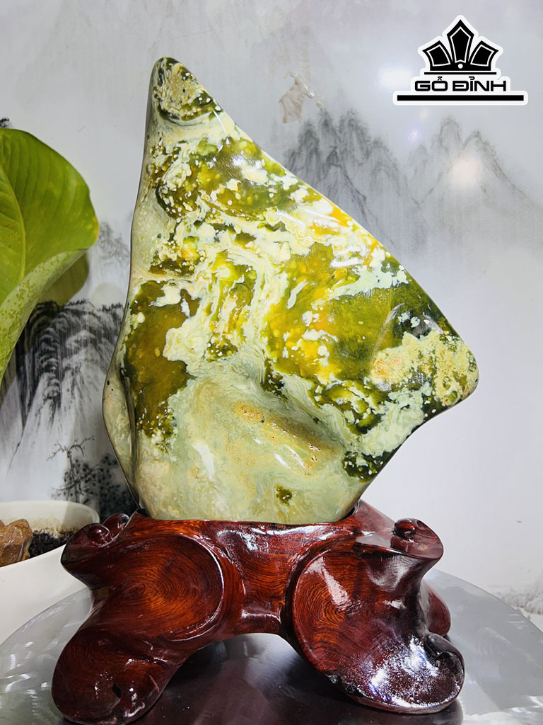 Tác Phẩm Đá Canxedon Xanh Vàng Cao 39 Ngang 24 (cm) 5,9kg