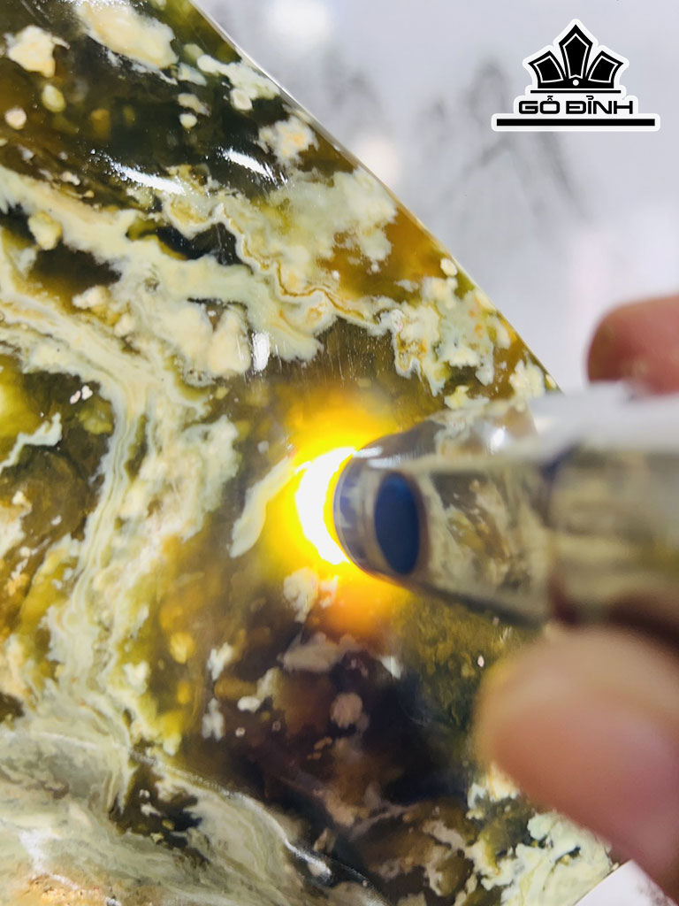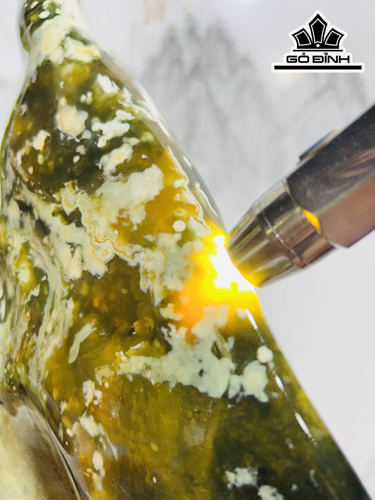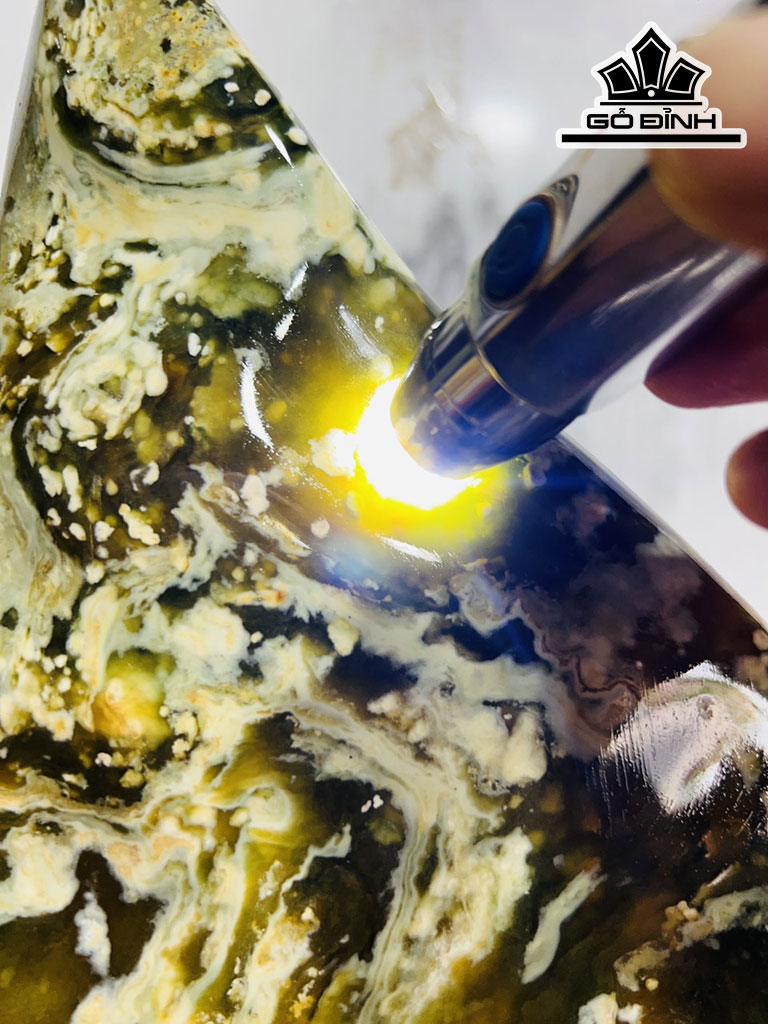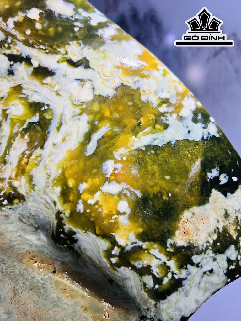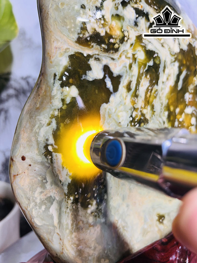 Tác Phẩm Đá Canxedon Xanh Vàng Cao 39 Ngang 24 (cm) 5,9kg