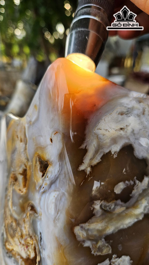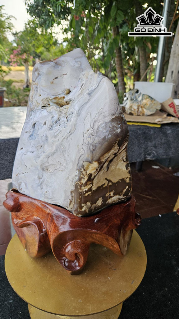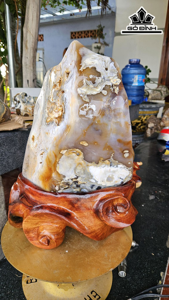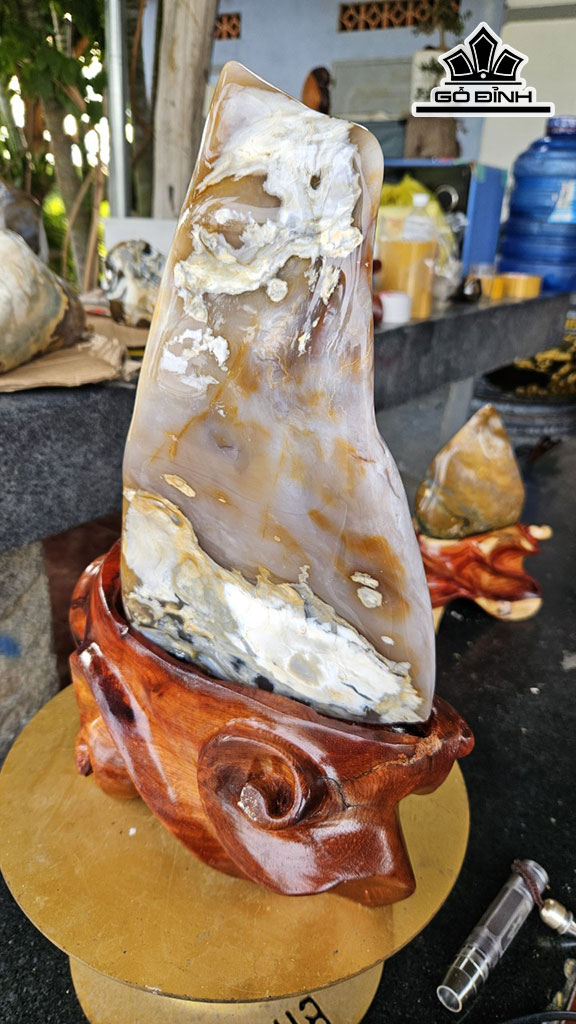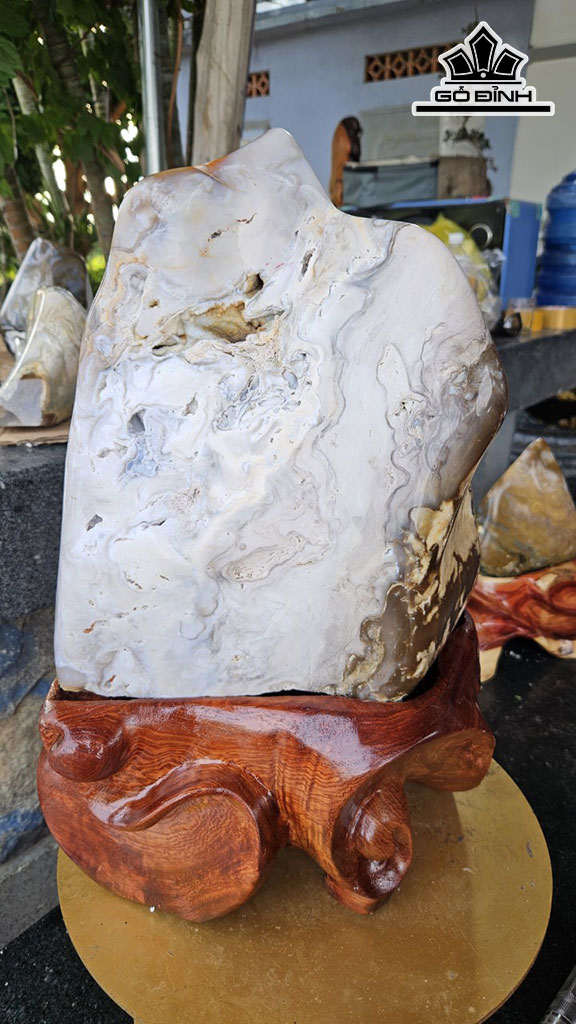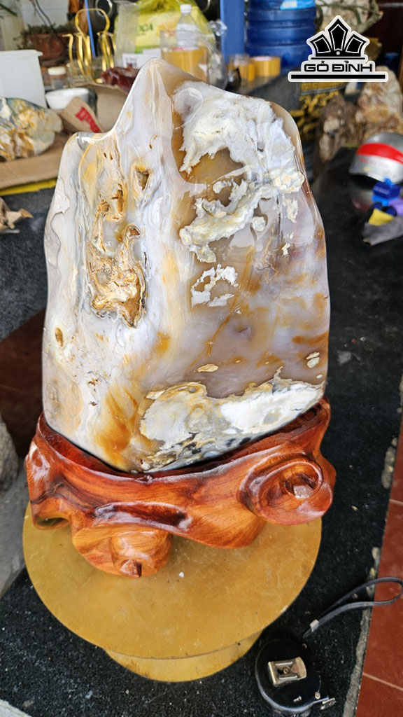 Tác Phẩm Đá Mã Não Trắng Cao 42 Ngang 22 (cm) 11kg